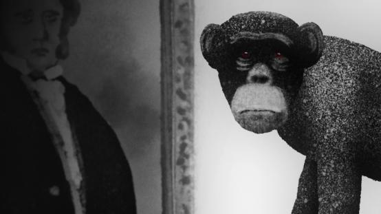 Τροπικό δάσος της Αφρικής. Μια σκοτεινή φιγούρα ξεφεύγει από τη πυκνή βλάστηση θάμνων. Η κραυγή του κυνηγού απλώνεται όλο και περισσότερο. Τα μάτια του χιμπατζή λάμπουν στο σκοτεινό του πρόσωπο. Αναπνέει βαριά, τρέπεται σε φυγή μέσα στη ζούγκλα. Το τρομαγμένο ζώο φτάνει σε μια όμορφη αποικιακή βίλα και κρύβεται μέσα σε αυτή. Έχοντας εγκατάλειψη το φυσικό του περιβάλλον, το ζώο θα σταθεί μπροστά σε μια σημαντική επιλογή. «Η Επίσκεψη» είναι μια ταινία που θέτει το ερώτημα: μέχρι που είσαι ζώο και από πού ξεκινάς να είσαι άνθρωπος;