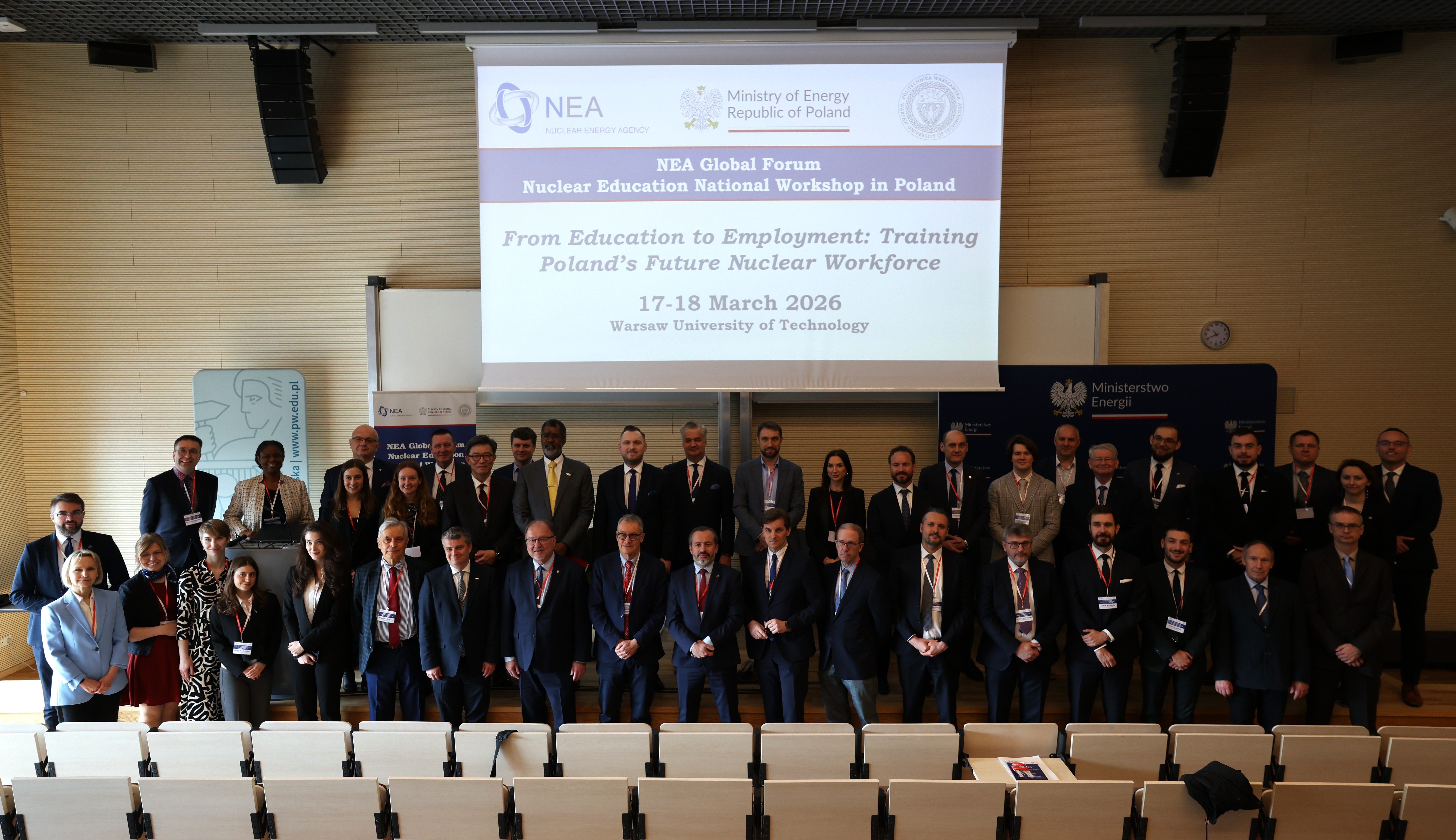 Przez dwa dni (17-18 marca 2026 r.) Agencja Energii Jądrowej (NEA) OECD, we współpracy z Ministerstwem Energii, prowadziła na Politechnice Warszawskiej krajowe warsztaty w ramach inicjatywy Global Forum on Nuclear Education.