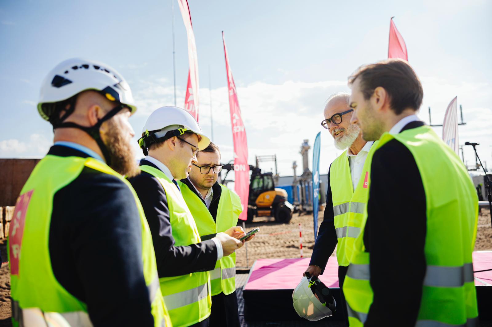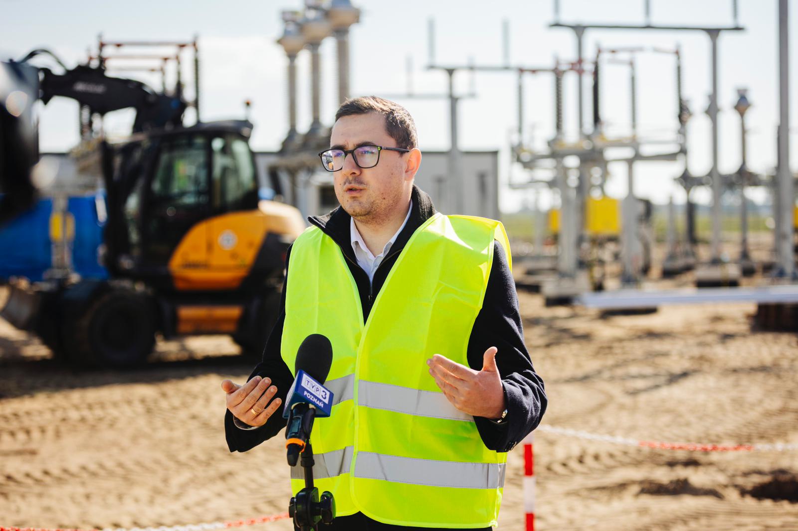 Na terenie budowy Minister Energii wziął udział w konferencji prasowej. Tematem spotkania było m.in. wspieranie krajowego łańcucha dostaw.