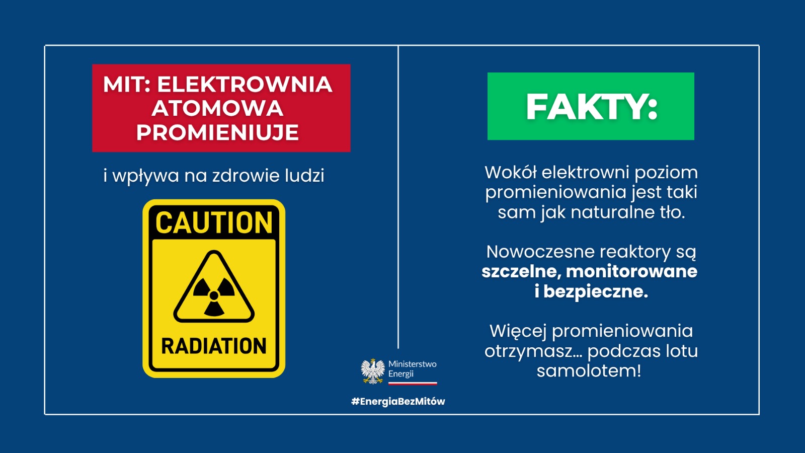 W ramach kampanii na stronie internetowej Ministerstwa Energii powstała specjalna podstrona poświęcona dezinformacji w energetyce, na której obalane są popularne, lecz całkowicie nieprawdziwe informacje. W ich miejsce prezentowane są sprawdzone przez ekspertów energetycznych fakty. Energetyczne mity będą pokazywane i wyjaśniane w mediach tradycyjnych oraz w mediach społecznościowych.