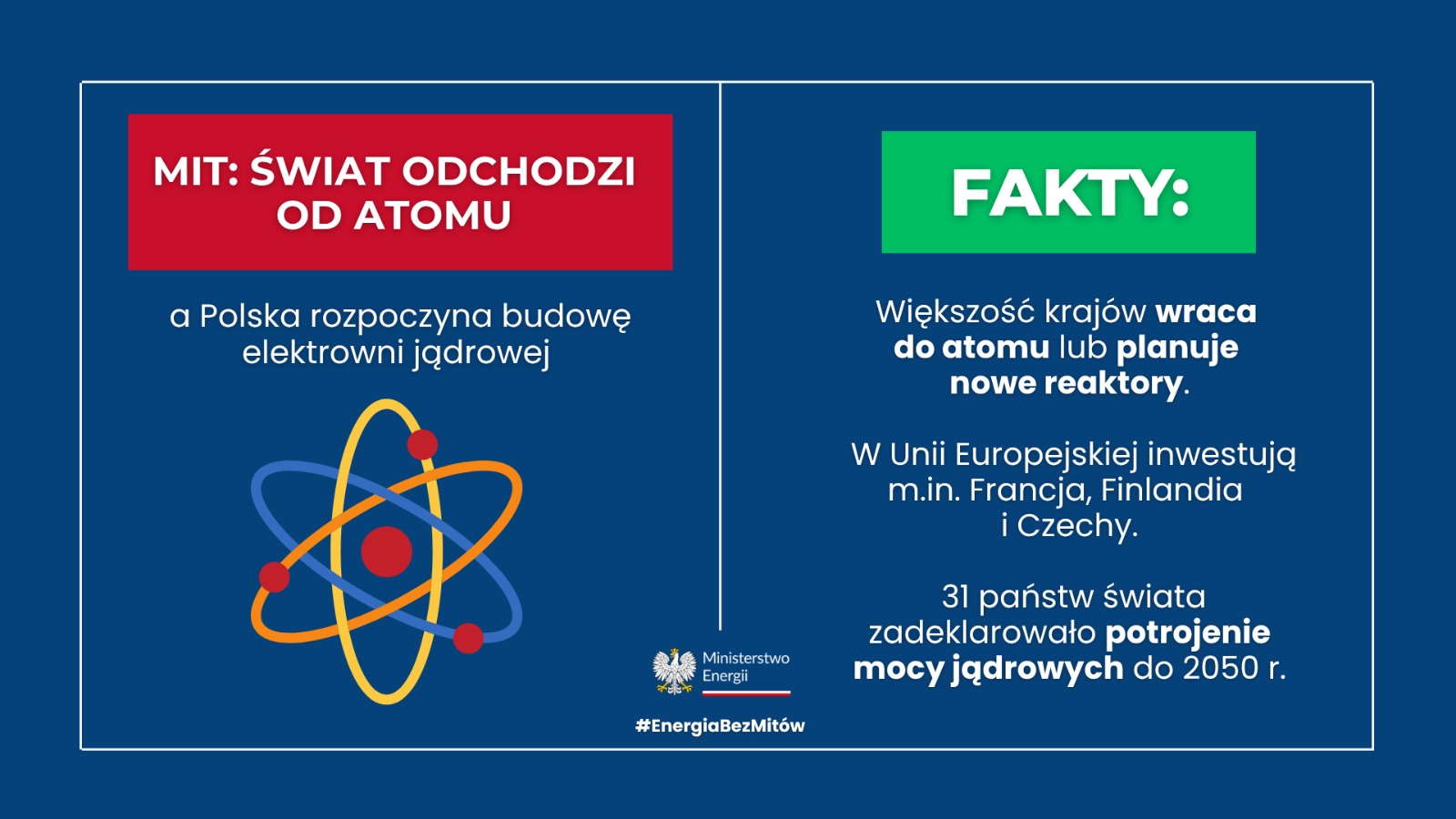 - W debacie o energetyce pojawia się mnóstwo kłamstw i fake newsów. Dotyczą energetyki jądrowej, odnawialnych źródeł energii, transformacji energetycznej, zmian klimatu, a nawet praw fizyki. Uznaliśmy, że musimy postawić tarczę, która obroni nas przed dezinformacją. Dlatego stworzyliśmy jedno miejsce, gdzie publikujemy sprawdzone fakty i twarde dane dotyczące energetyki. Dezinformacja stanowi realne zagrożenie dla transformacji energetycznej, dlatego rozpoczynamy szeroką akcję informacyjną, realizowaną w mediach tradycyjnych i społecznościowych. Dzięki niej obywatele będą mogli zweryfikować niesprawdzone informacje, skorzystać z pewnego źródła danych i podejmować decyzje w oparciu o fakty. Naszym celem jest budowanie zaufania do instytucji państwa i wspieranie bezpiecznego, świadomego rozwoju polskiej energetyki – mówi Miłosz Motyka, Minister Energii.