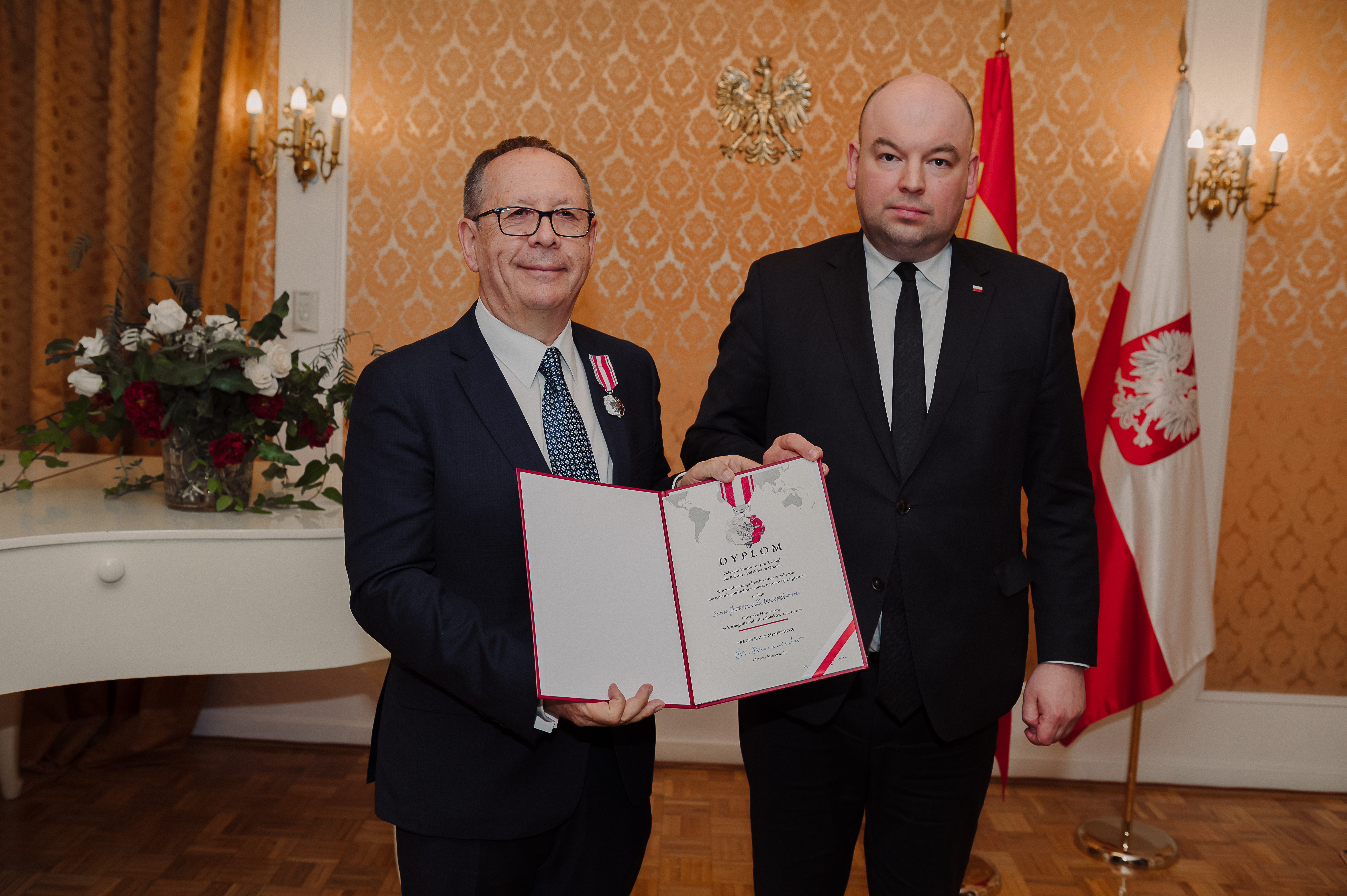 Durante la ceremonia, además, el Ministro Jan Dziedziczak entregó sendas insignias de honor, concedidas por el Primer Ministro polaco Mateusz Morawiecki, a dos Cónsules polacos que celebran este año su 25 aniversario en el cargo: Jerzy Zieleniewski, Cónsul Honorario en Murcia, y Ramón Sentis Durán, Cónsul General Honorario en Valencia.