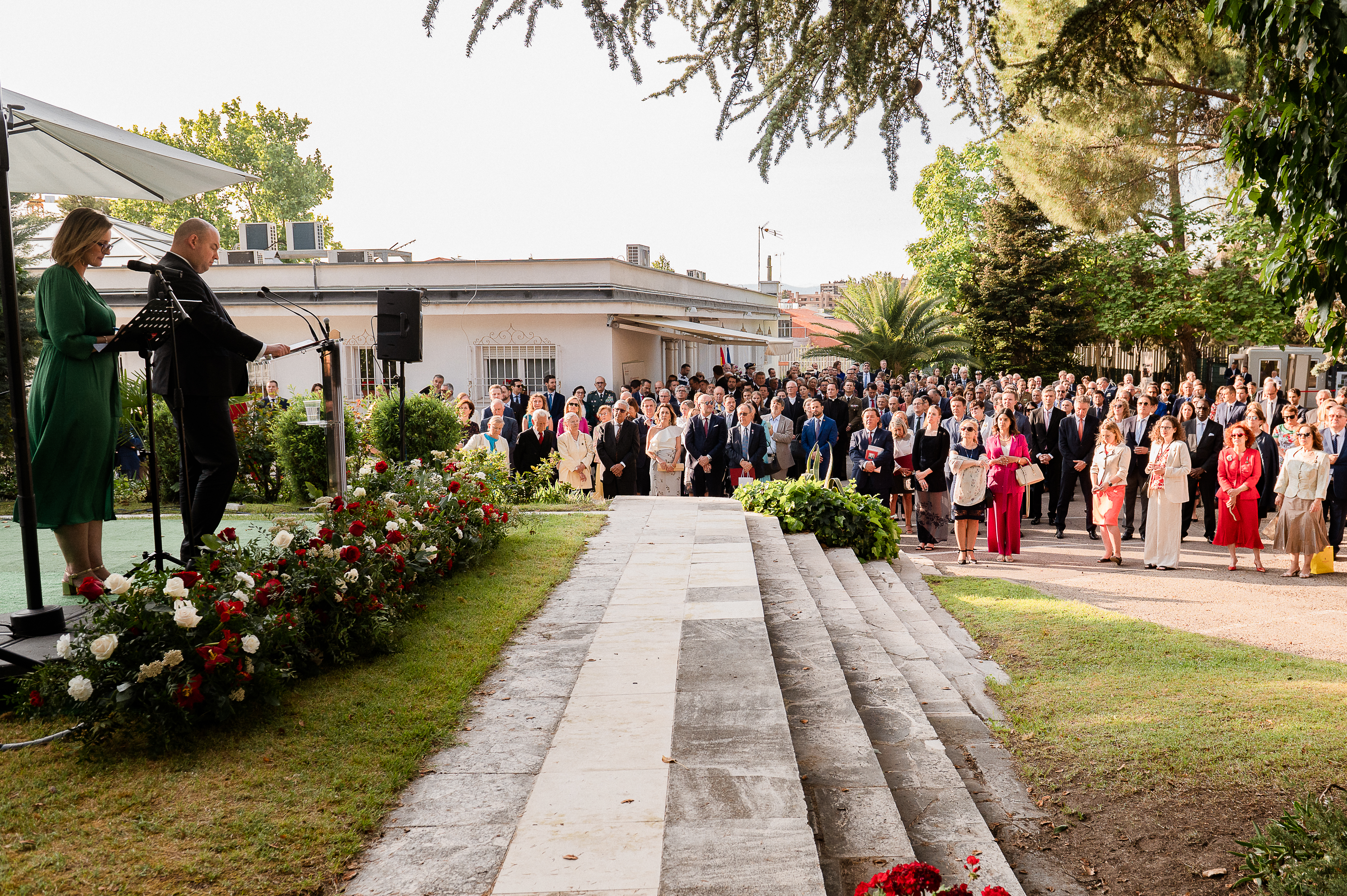 A continuación tuvo lugar una ceremonia en los jardines de la Embajada con motivo de la fiesta nacional de la Constitución del 3 de mayo. La Embajadora de la República de Polonia, Anna Sroka, presentó a los invitados la historia de la adopción de la Constitución y señaló su papel histórico y su importancia para la actualidad. También destacó que la herencia histórica de la Commonwealth polaco-lituana debería inspirar la cooperación actual en el seno de la UE, especialmente frente a la agresión rusa contra Ucrania.