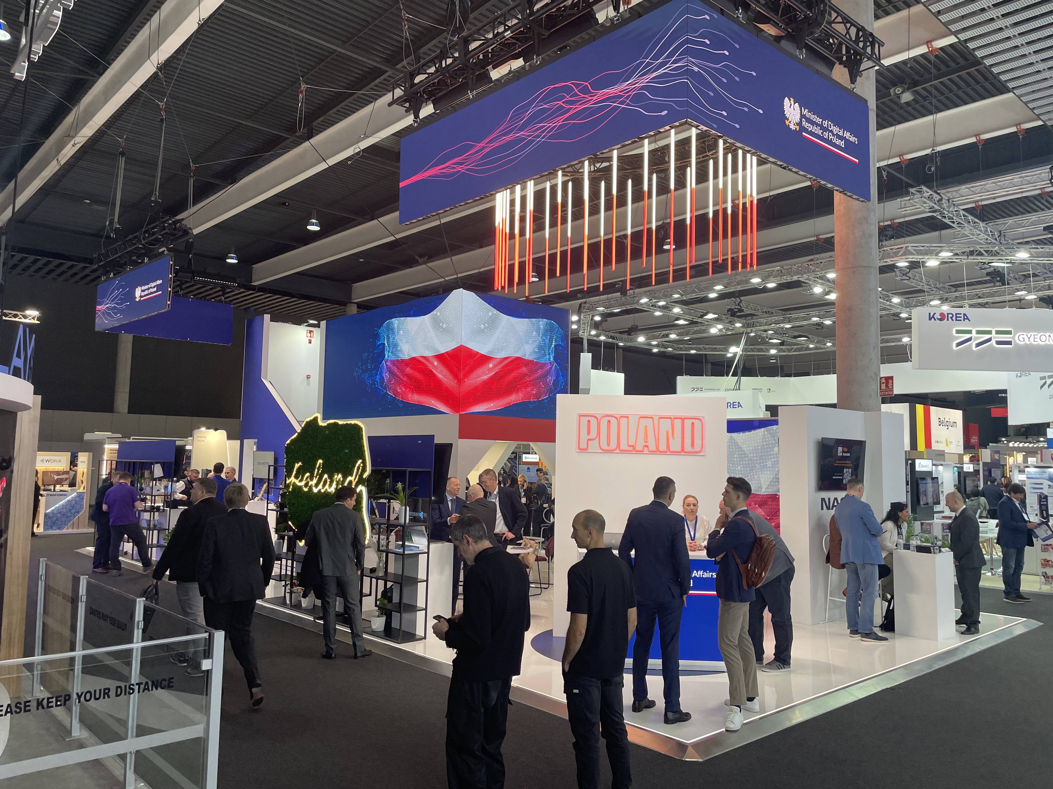 Una gran delegación del Ministerio de Digitalización, encabezada por el Viceprimer Ministro y Ministro de Digitalización, Krzysztof Gawkowski, junto con el Secretario de Estado Paweł Olszewski y el Subsecretario de Estado Rafał Rosiński, asistió al evento. La delegación estuvo acompañada por la Encargada de Negocios a.i. en el Reino de España, Monika Krzepkowska, y la Cónsul General de Polonia en Barcelona, Ilona Kałdońska. El primer día de la feria, el Viceprimer Ministro Krzysztof Gawkowski, el Secretario de Estado Paweł Olszewski y la Encargada de Negocios Monika Krzepkowska inauguraron oficialmente el pabellón nacional. Los representantes del Ministerio de Digitalización mantuvieron varias reuniones centradas principalmente en el intercambio de experiencias y en discutir las posiciones de los países sobre actos legislativos clave que regulan el funcionamiento de la realidad digital. Entre las reuniones oficiales, la delegación del Ministerio de Digitalización visitó los stands individuales de las empresas polacas fuera del pabellón nacional.