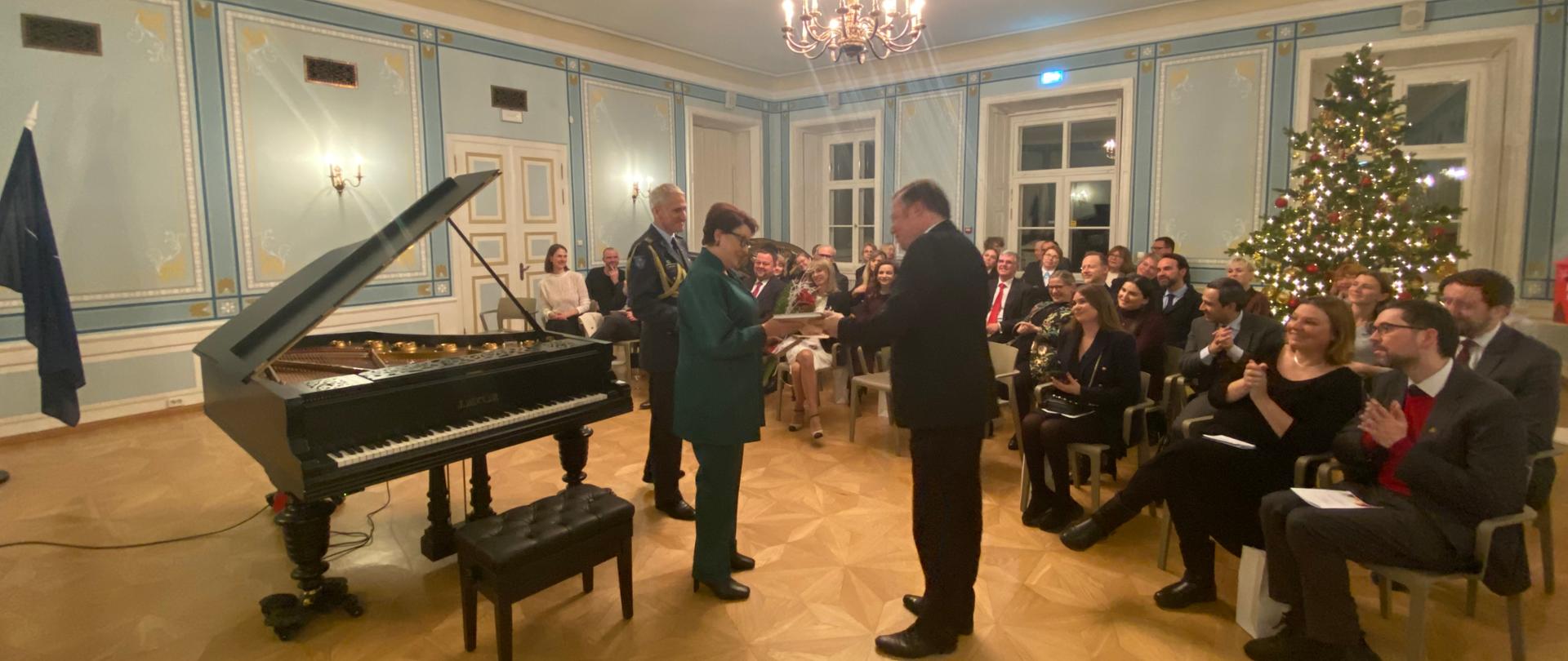 „Mrs Karis is the very embodiment of competence, commitment, diligence, elegance, and hospitality, she has excellent organisational skills and knows how to present her people and their friends in Poland. These same qualities also characterised Maria Kruszewska-Laidoner, a great lady, a prominent social figure herself, and an indispensable support to her husband, the statesman,“ Ambassador of the Republic of Poland Grzegorz Kozłowski said, handing the award over at the traditional salon concert dedicated to the 134th anniversary of Maria Kruszewska-Laidoner at the Estonian War Museum – General Laidoner Museum in Viimsi on 7 December.