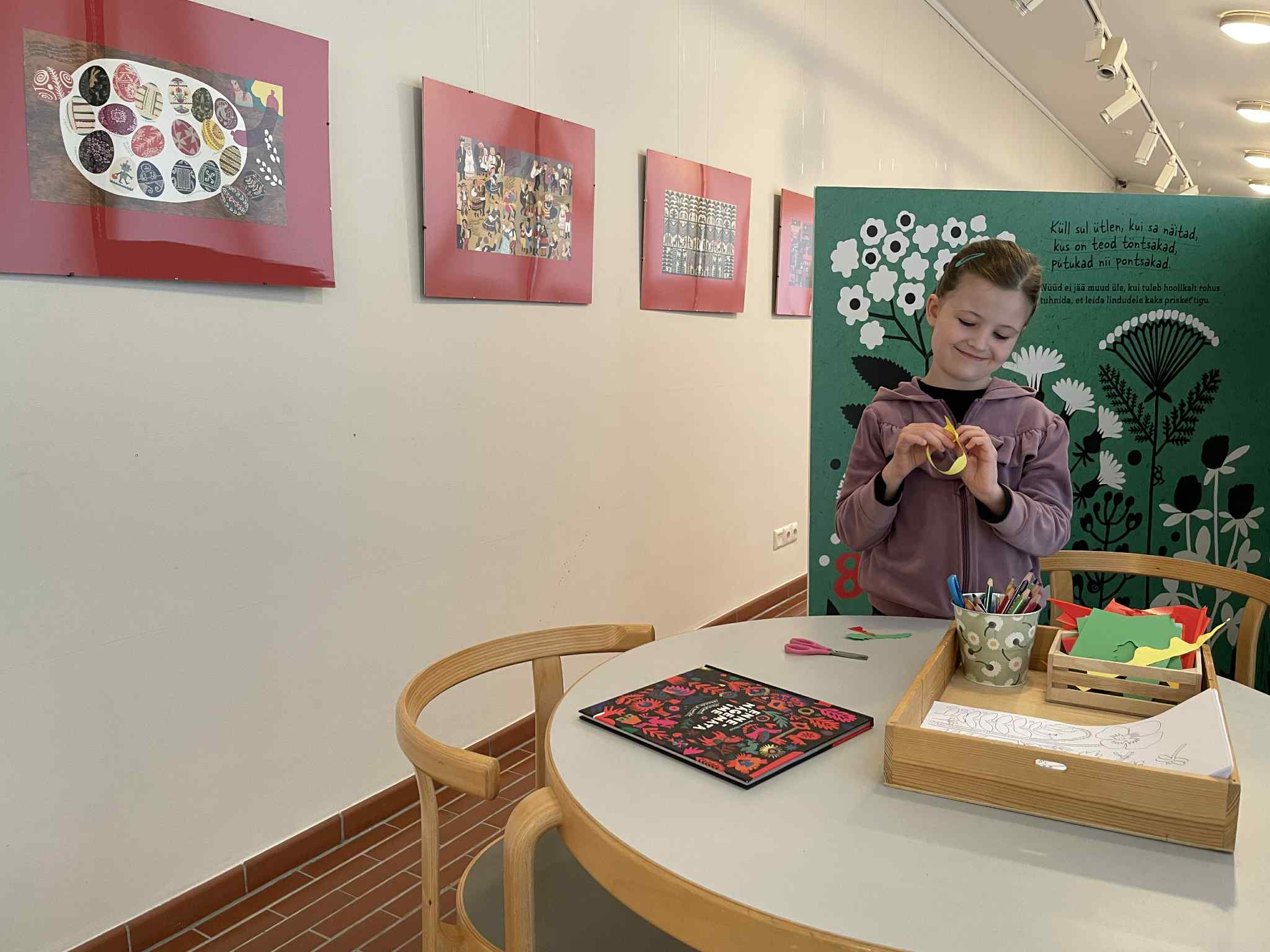 Drugą ekspozycję dedykowaliśmy obchodom Estońskiego Roku Książki 2025. „Polska sztuka-czar wycinanki. Ilustracje Marianny Oklejak” to cykl ilustracji z książek „Cuda wianki. Polski folklor dla młodszych i starszych” i „Cuda niewidy. Zagadki dla młodszych i starszych” oraz wycinakowe rękodzieło i kącik literacko-plastyczny. Pretekstem do wznowienia pokazywanej w Estonii w okresie 2020-2023 wystawy prac uznanej polskiej artystki stała się estońska premiera jej książki „Cuda niewidy”, opublikowanej w tłumaczeniu Liisi Laineste nakładem Koolibri w kwietniu 2025 roku.