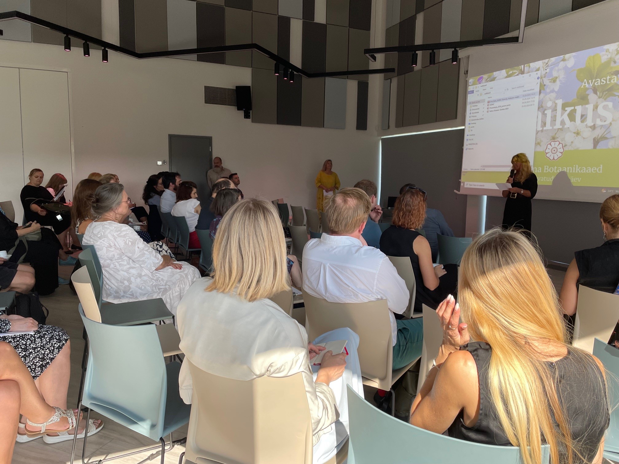 Po wystąpieniu otwierającym naradę, wygłoszonym przez charge d’affaires a.i. RP w Estonii Annę Pełkę, dyrektor instytucji goszczącej – Urve Sinijärv (Ogród Botaniczny w Tallinnie) zaprosiła do odnowienia lub nawiązania współpracy przez misje dyplomatyczne. Meelis Kompus, dyrektor Departamentu Internacjonalizacji i Komunikacji w Ministerstwie Kultury RE zaprezentował priorytety na rok 2025 r. (m.in. Estoński Rok Książki, jubileusz Arvo Pärt 90, sezon estoński w Dreźnie). Dyrektor Działu Współpracy Międzynarodowej w Biurze ESK Tartu 2024, Erni Kask, podziękował za dotychczasową współpracę, przedstawił kalendarz wydarzeń „europejskich“ i dotyczących korpusu dyplomatycznego do końca obchodów ESK 2024. Zaprezentował także dotychczasowe kluczowe projekty, zrealizowane we współpracy z EUNIC (Przegląd Kina Europejskiego, ekspozycja „Europa się bawi“, Festiwal Literacki „Prima Vista“ i in). Wśród wydarzeń kluczowych Stolicy Kulturalnej Europy wymienił m.in. Dzień Polskiej Flagi w Tartu (7.05.2024) oraz koncert z okazji Dnia Europy „Przypowieść o maku“ (9.05.2024) – oba wieloelementowe projekty współorganizowane były przez Ambasadę RP w Tallinnie i Instytut Adama Mickiewicza przy wsparciu finansowym MKiDN. Radczyni do spraw języka w Przedstawicielstwie Komisji Europejskiej w Tallinnie, Riita Niineste poprowadziła praktyczną część narady, dotyczącą narodowych kawiarni językowych Europejskiego Dnia Języków w Tartu 26.09.2024.