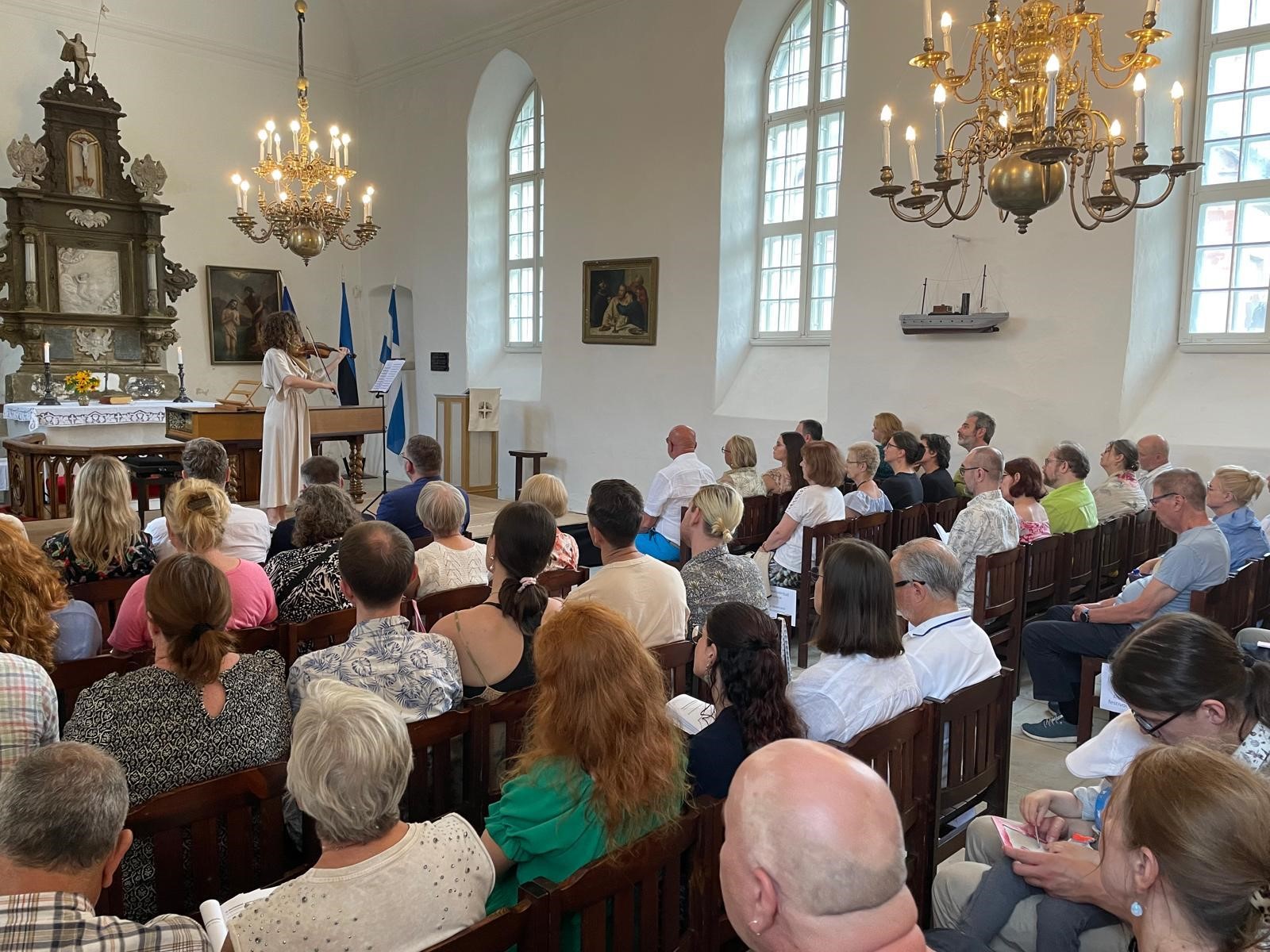 Jako pierwsza w kościele pw. św. Jana wystąpiła Małgorzata Malke z bardzo wymagającym, zawierającym liczne polskie motywy melodyczne programem „12 Fantazji na skrzypce solo” G.Ph. Telemanna. Obok wirtuozerii Malke i zabawy w tropienie rytmów oberka, kujawiaka czy poloneza, uwagę publiczności przykuwał jej instrument – skrzypce z 1719 roku, wykonane przez francuskiego lutnika Claude’a Pierraya. Skrzypaczka to stypendystka Ministra Kultury i Dziedzictwa Narodowego. Na prestiżowy festiwal w Haapsalu została zaproszona po raz pierwszy przez profesora Andresa Siitana w roku 2022 w charakterze koncertmistrzyni Orkiestry Festiwalowej. Tegoroczny recital solowy pozwolił w pełni zaprezentować potencjał wykonawczy artystki i wyeksponować cenne źródło z punktu widzenia polskiego dziedzictwa muzycznego.