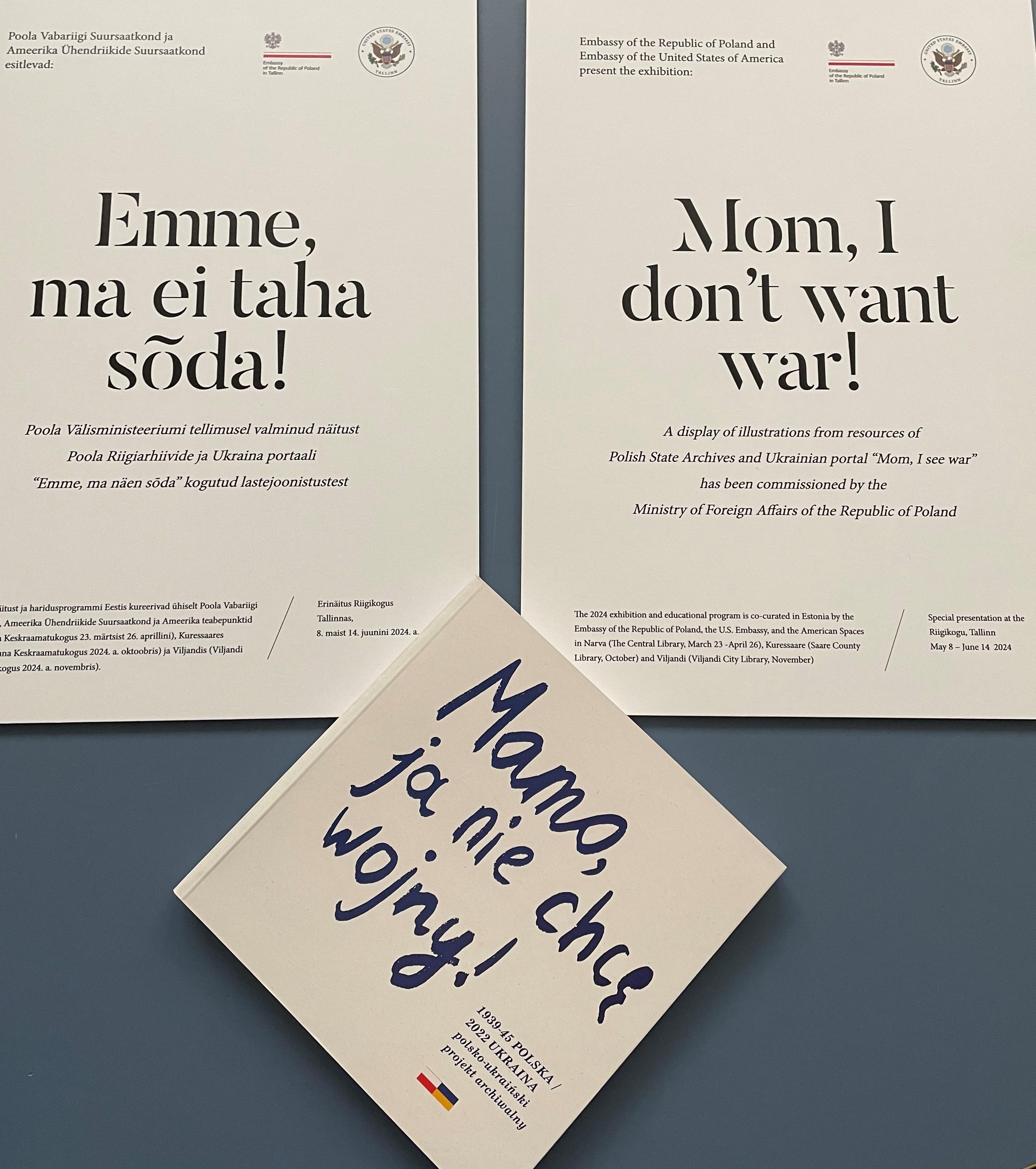 Kuratorami programu wystawienniczo-edukacyjnego „Mamo, ja nie chcę wojny!” zaprojektowanego na rok 2024 w Estonii są wspólnie Ambasady Polski i Stanów Zjednoczonych oraz amerykańskie punkty informacyjno-biblioteczne w Narwie, Kuressaare i Viljandi.