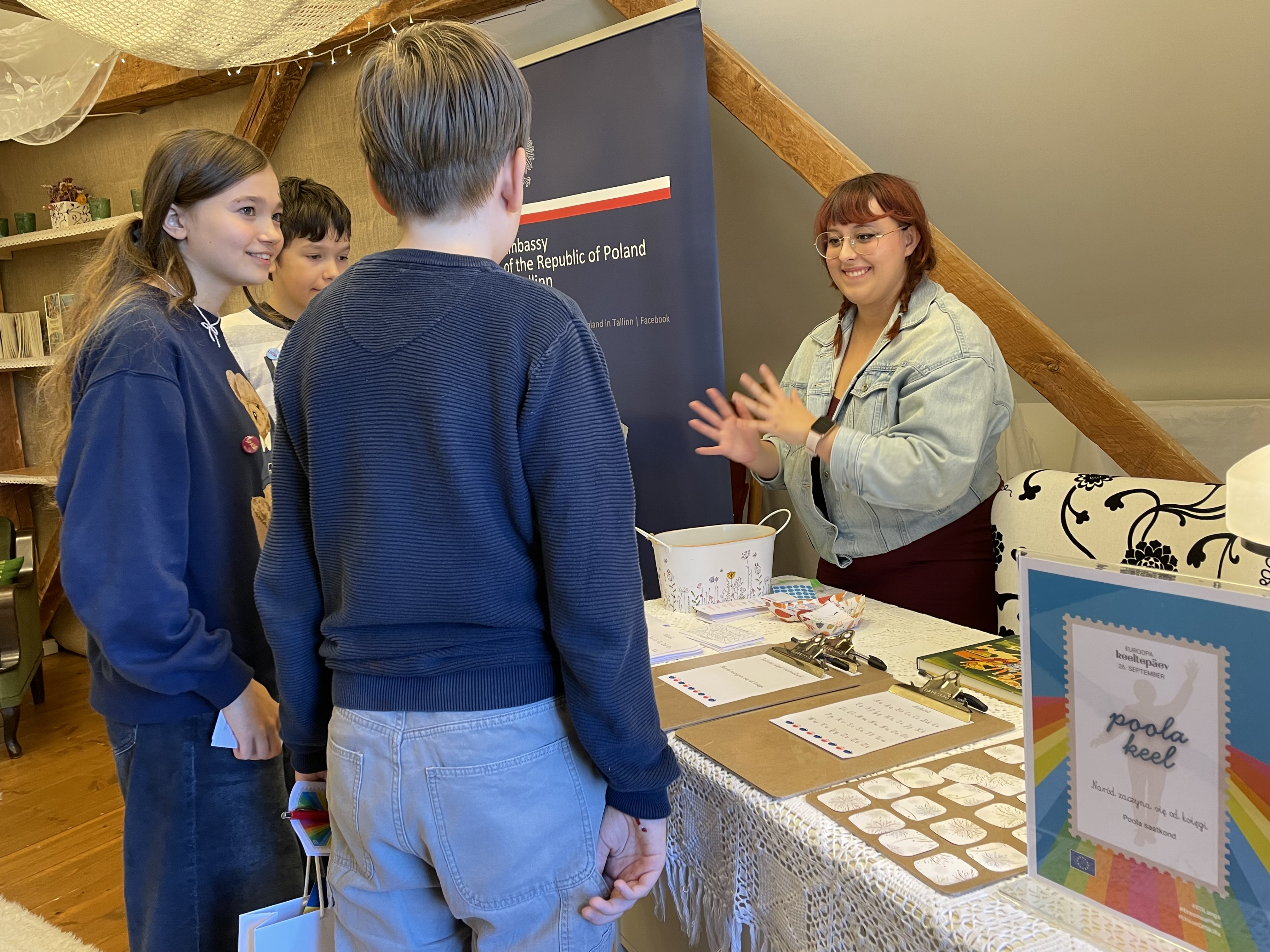 Na stoisku Ambasady RP w Tallinnie motywem przewodnim była kaligrafia. Dzieci uczyły się pisać w języku polskim, poznawały też unikatowe litery i dźwięki. Uczestnicy, którzy zmierzyli się z polskim alfabetem i poprawnie rozwiązali wszystkie zadania otrzymywali grę memory dedykowaną polskiej ortografii oraz polskie słodycze. Główną nagrodą wydarzenia stanowiła książka „Cuda Niewidy” autorstwa Marianny Oklejak, w tłumaczeniu Liisi Laineste na język estoński. Polskie stoisko sąsiadowało ze stoiskiem Ambasady Hiszpanii, była więc to doskonała okazja do wzajemnej wymiany językowej, między innymi łamańców językowych po polsku i hiszpańsku.