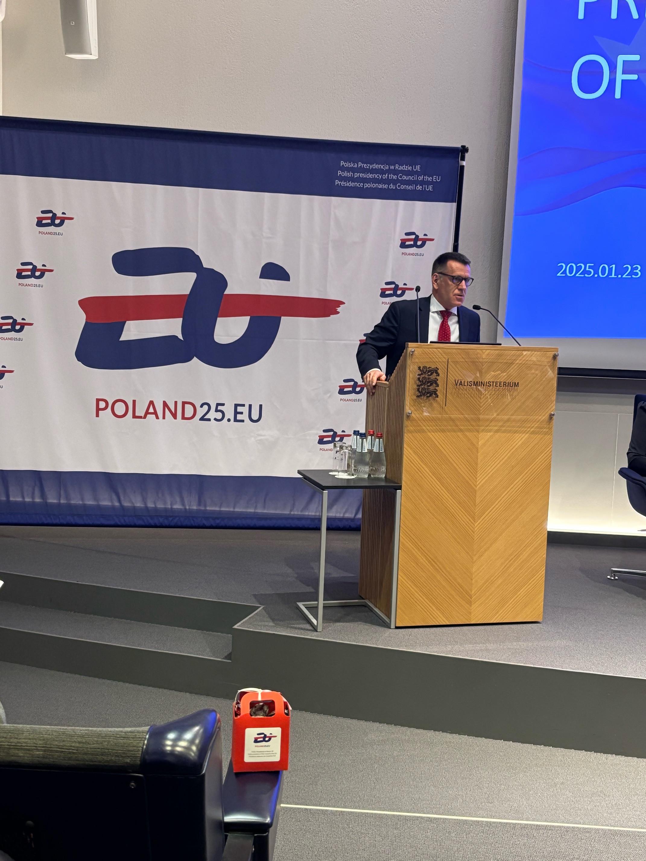 W trakcie seminarium Artur Orzechowski poinformował uczestników o zbliżającym się wydarzeniu organizowanym przez Ambasadę RP w Tallinnie – lunchu w formule HoMs w dniu 21 lutego br. z udziałem Margusa Tsahkny, ministra spraw zagranicznych EE, jako gościa honorowego. W głównej części wystąpienia przedstawił program i priorytety przewodnictwa RP w Radzie UE, w szczególności w dziedzinie bezpieczeństwa zewnętrznego (wzmocnienie potencjału obronnego Unii, pomoc wojskowa UE dla Ukrainy), wewnętrznego (zatrzymanie nielegalnej migracji i ochrona granic), informacyjnego (zwiększenie cyberbezpieczeństwa, walka z dezinformacją), ekonomicznego (równe warunki konkurencji dla przemysłu UE), energetycznego (zapewnienie pełnej niezależności energetycznej od RU, dostęp do energii w przystępnej cenie), żywnościowego (zwiększenie konkurencyjności rolnictwa w ramach UE) i zdrowotnego (poprawa bezpieczeństwa lekowego w Unii).