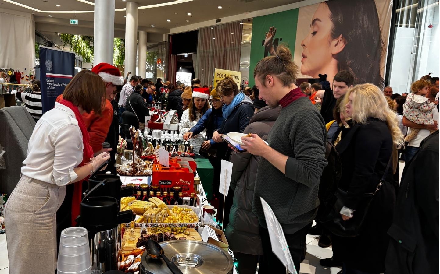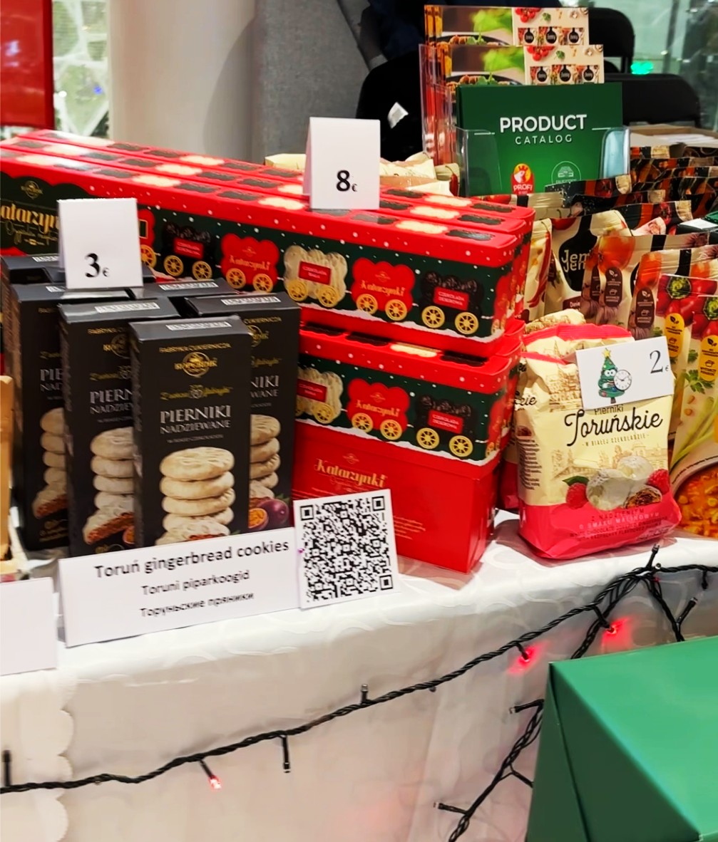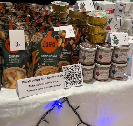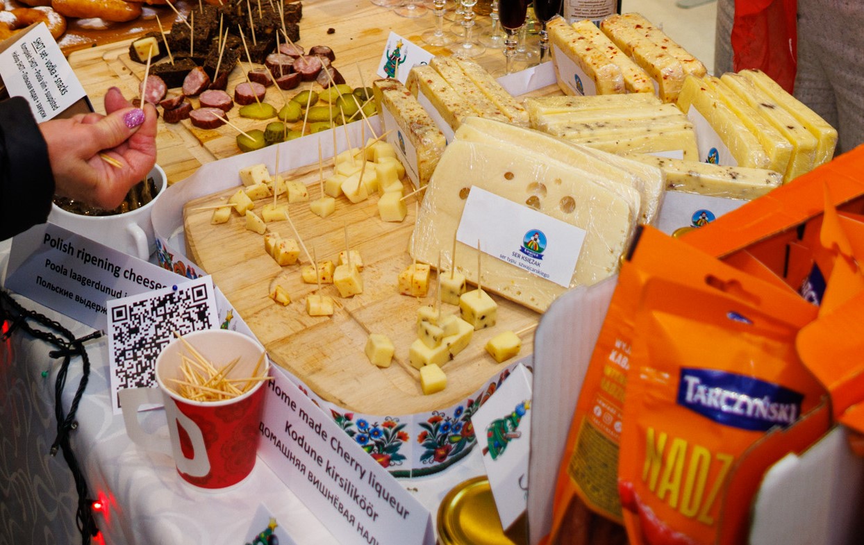 Zespół Ambasady RP w Tallinnie ponownie przygotował polskie stoisko, a dzięki współpracy z polskimi przedsiębiorcami mogliśmy poszczycić się największym stanowiskiem z bardzo szerokim asortymentem. W swojej ofercie mieliśmy m.in. pyszne i różnorodne produkty firmy Profi, Łowicz, Tarczyński oraz Kopernik. Odwiedzający mogli wybierać spośród różnorodnych kosmetyków firm Ziaja, Dr Irena Eris oraz Flos-Lek. Do zakupu były również przepiękne, ręcznie wykonane bombki z Fabryki Bombek w Staszowie, ręcznie robione torebki od firmy MagBag Magdalena Wójcik, odzież od firmy Vayana, czy wiele lokalnych produktów przesłanych z województwa dolnośląskiego oraz firmy LOT. Oczywiście nie mogło zabraknąć smakołyków przygotowanych przez samych pracowników Ambasady, a wśród których prym wiodły pierogi, bigos czy oponki.