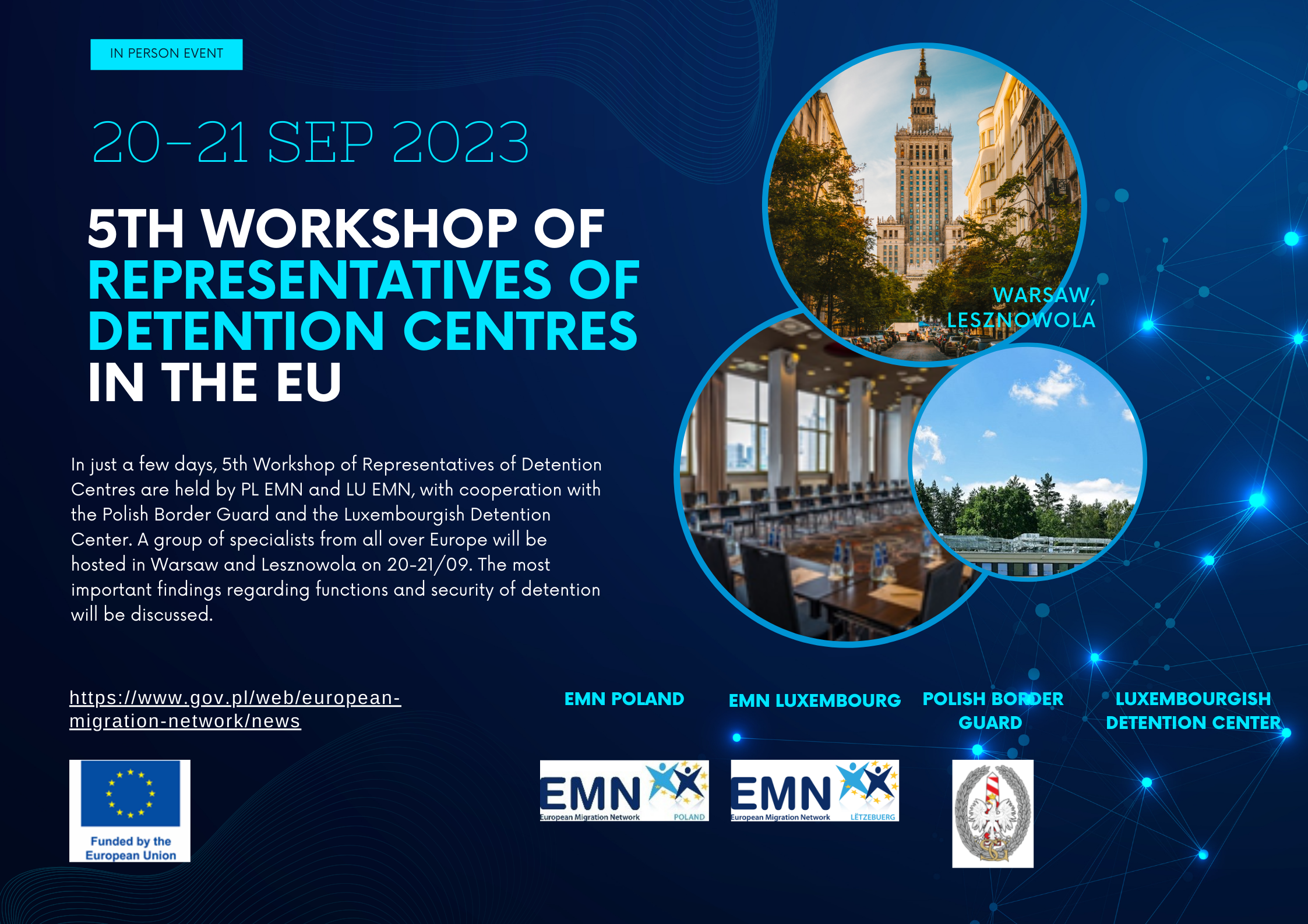 5th Workshop of Representatives of Detention Centres in the EU are held by PL EMN and LU EMN, with cooperation with the Polish Border Guard and Luxembourgish Detention Center. A group of specialists from all over Europe will be hosted in Warsaw and Lesznowola on 20-21/09. The most important findings regarding functions and security of detention will be discussed.