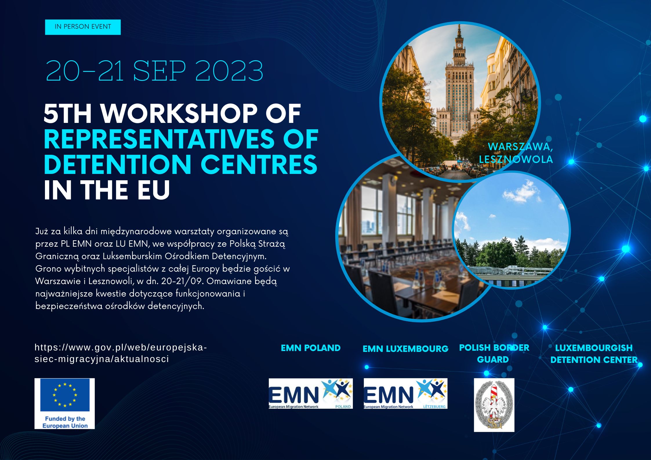5th Workshop of Representatives of Detention Centres in the EU, organizowane są przez PL EMN oraz LU EMN, we współpracy ze Polską Strażą Graniczną oraz Luksemburskim Ośrodkiem Detencyjnym. Grono wybitnych specjalistów z całej Europy będzie gościć w Warszawie i Lesznowoli, w dn. 20-21/09. Omawiane będą najważniejsze kwestie dotyczące funkcjonowania i bezpieczeństwa ośrodków detencyjnych.