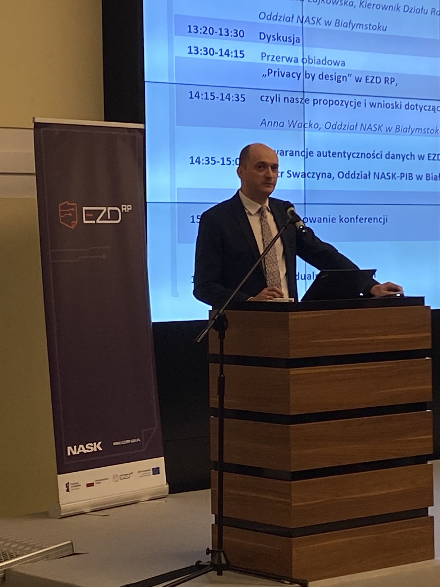Bartłomiej Klinger - Przewodniczący Komitetu Sterującego EZD RP podczas konferencji podkreślił, że projekt EZD RP jest projektem strategicznym dla polskiej administracji. W ten sposób traktowany jest zarówno przez Ministerstwo Cyfryzacji, jak i przez NASK.
