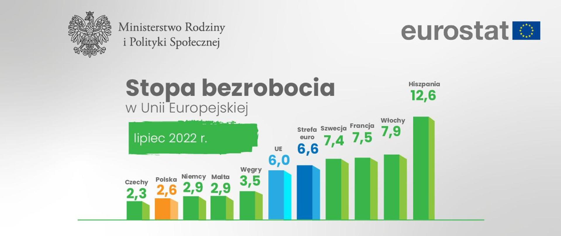 03.11.2022Eurostat: In September this year, unemployment in Poland again at 2.6 percent.According to Eurostat in September this year, the unemployment rate was 2.6 percent. The same result was recorded a month earlier. – This means that we are again ranked 2nd in the European Union in terms of the lowest level of unemployment – says Marlena Maląg, Minister of Family and Social Policy.