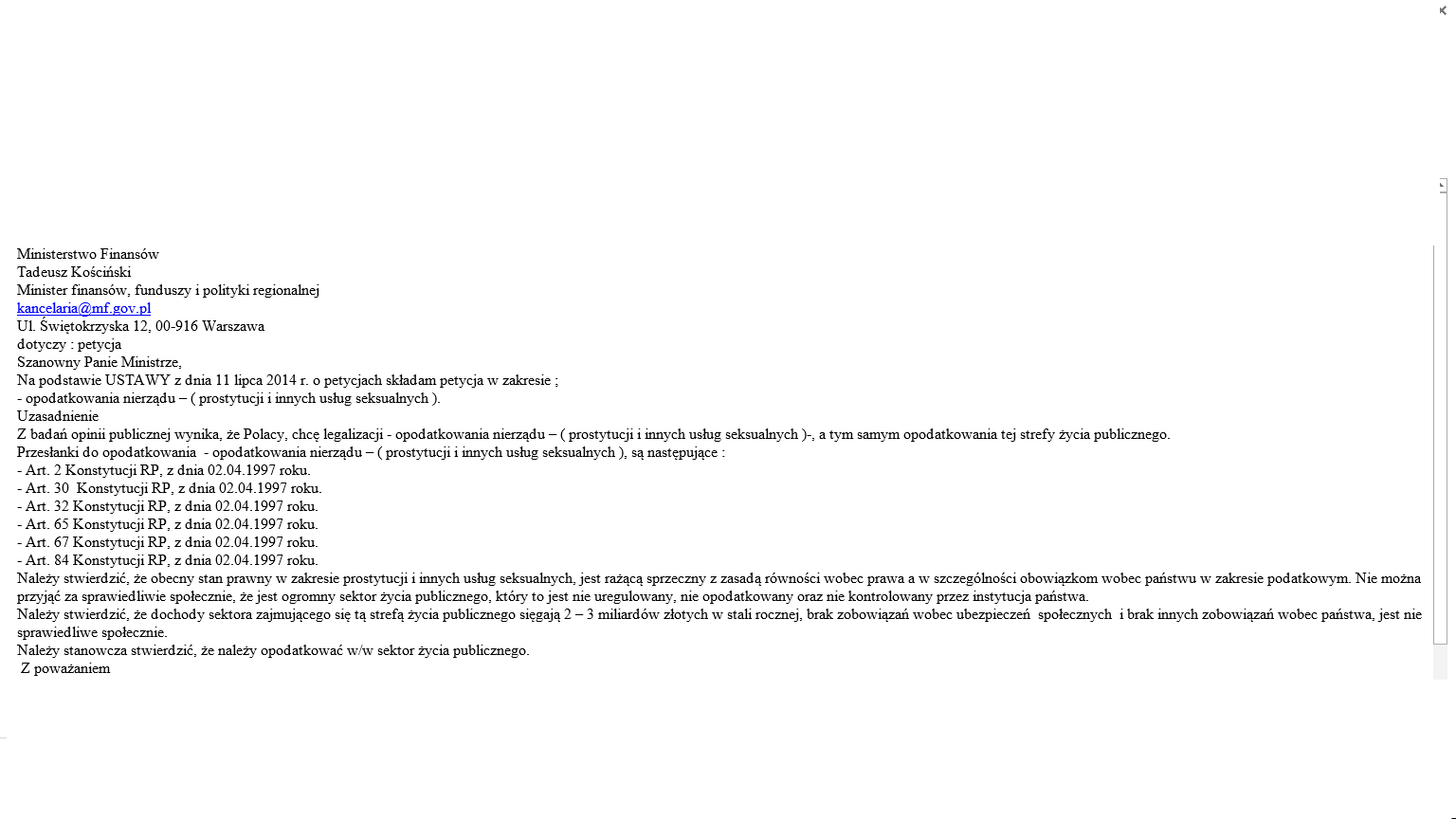 Petycja w sprawie opodatkowania nierząduPetycja w sprawie opodatkowania nierządu.png 0.06MB Odpowiedź na petycję ws. opodatkowania nierządu