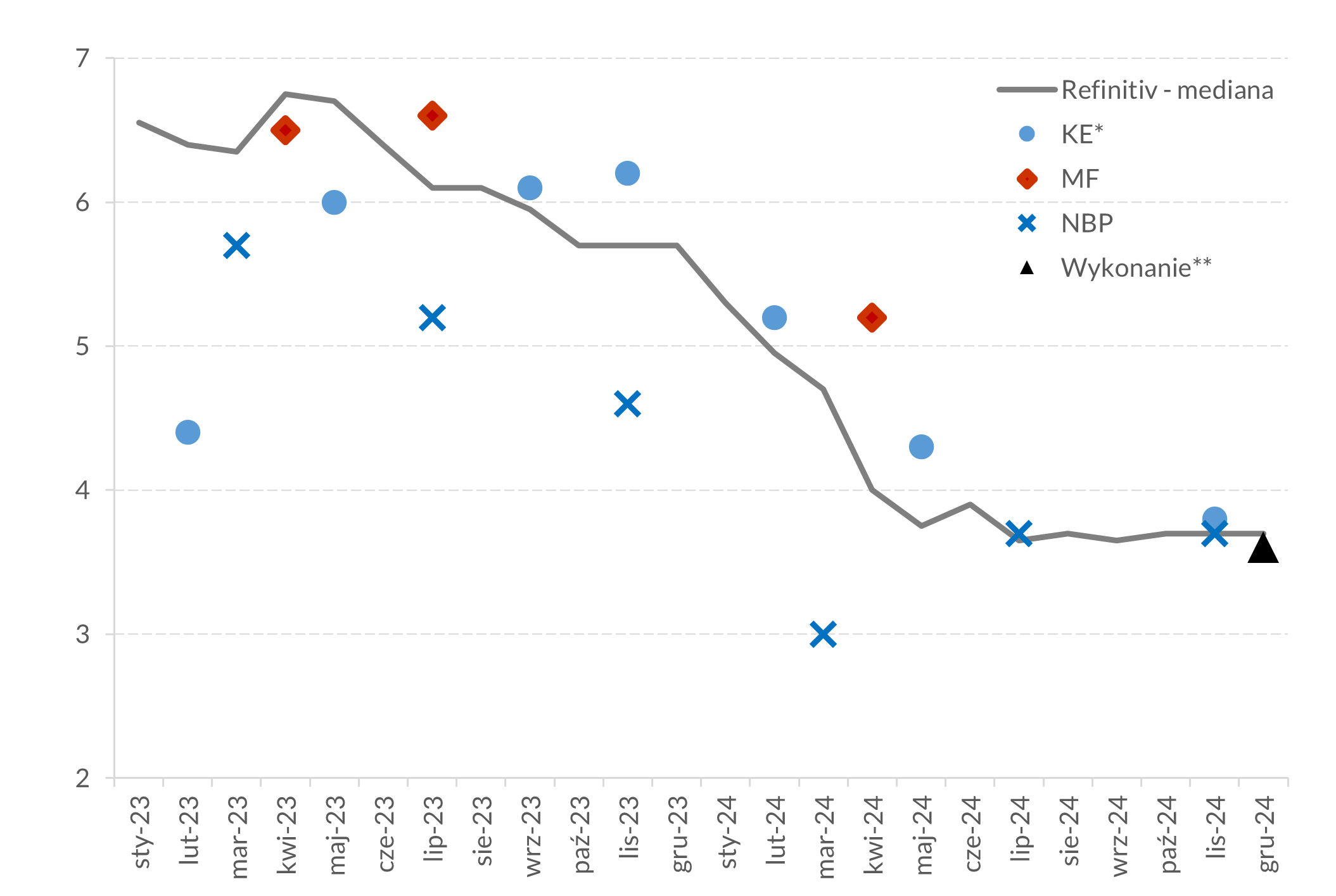 Kształtowanie się prognoz inflacji na lata 2024 i 2025: