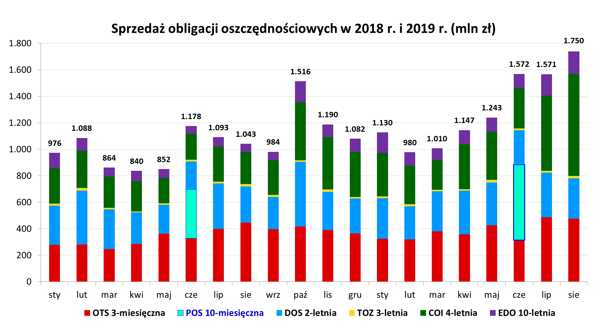 Wyniki sprzedaży obligacji oszczędnościowych w sierpniu 2019 roku.