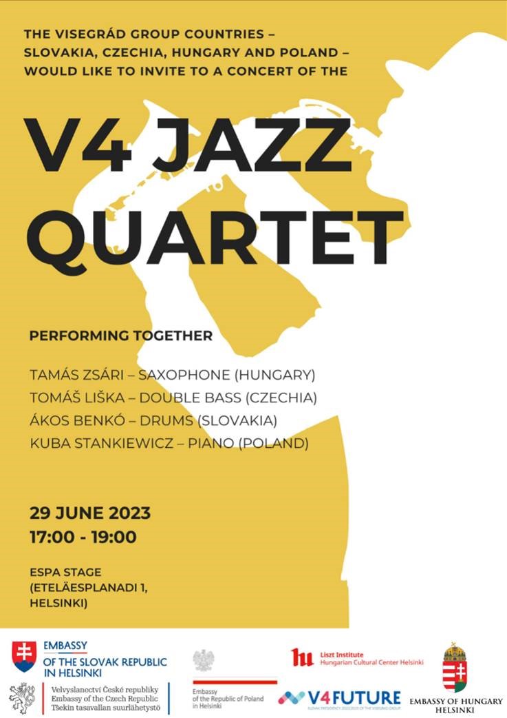 Ambasador Słowacji Slavomira Mašurová przekazała Prezydencję V4 na ręce Ambasadora Czech Adama Vojtěcha. W ceremonii uczestniczyli kierownicy ambasad Grupy Wyszehradzkiej w Helsinkach. Jazzowe improwizacje, które zabrzmiały w samym sercu Helsinek, przyciągnęły licznych widzów i turystów korzystających z pięknej pogody i bogatego programu kulturalnego przygotowanego przez cztery wyszehradzkie ambasady akredytowane w Helsinkach.