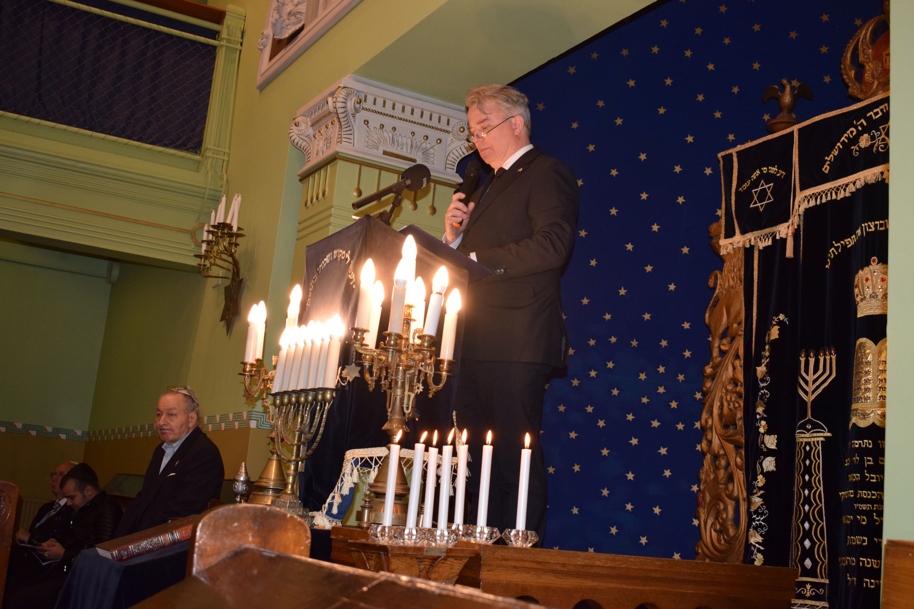 Chargé d’affaires a.i. Rzeczypospolitej Polskiej pan Andrzej Mojkowski w swoim przemówieniu zaznaczył, iż „Jak co roku zebraliśmy się dzisiaj, aby uczcić pamięć ofiar Holokaustu. Z sześciu milionów zamordowanych Żydów połowa była obywatelami polskimi. Holokaust pozostawił trwały ślad w historii mojego kraju. Polska postrzega siebie jako strażnika pamięci milionów Żydów zamordowanych w Holokauście … Polska chroni i promuje dziedzictwo polskich Żydów jako trwały i ważny składnik dziedzictwa kulturowego państwa polskiego. Obserwujemy znaczący wzrost liczby projektów mających na celu zachowanie miejsc o kluczowym znaczeniu historycznym dla Holokaustu.