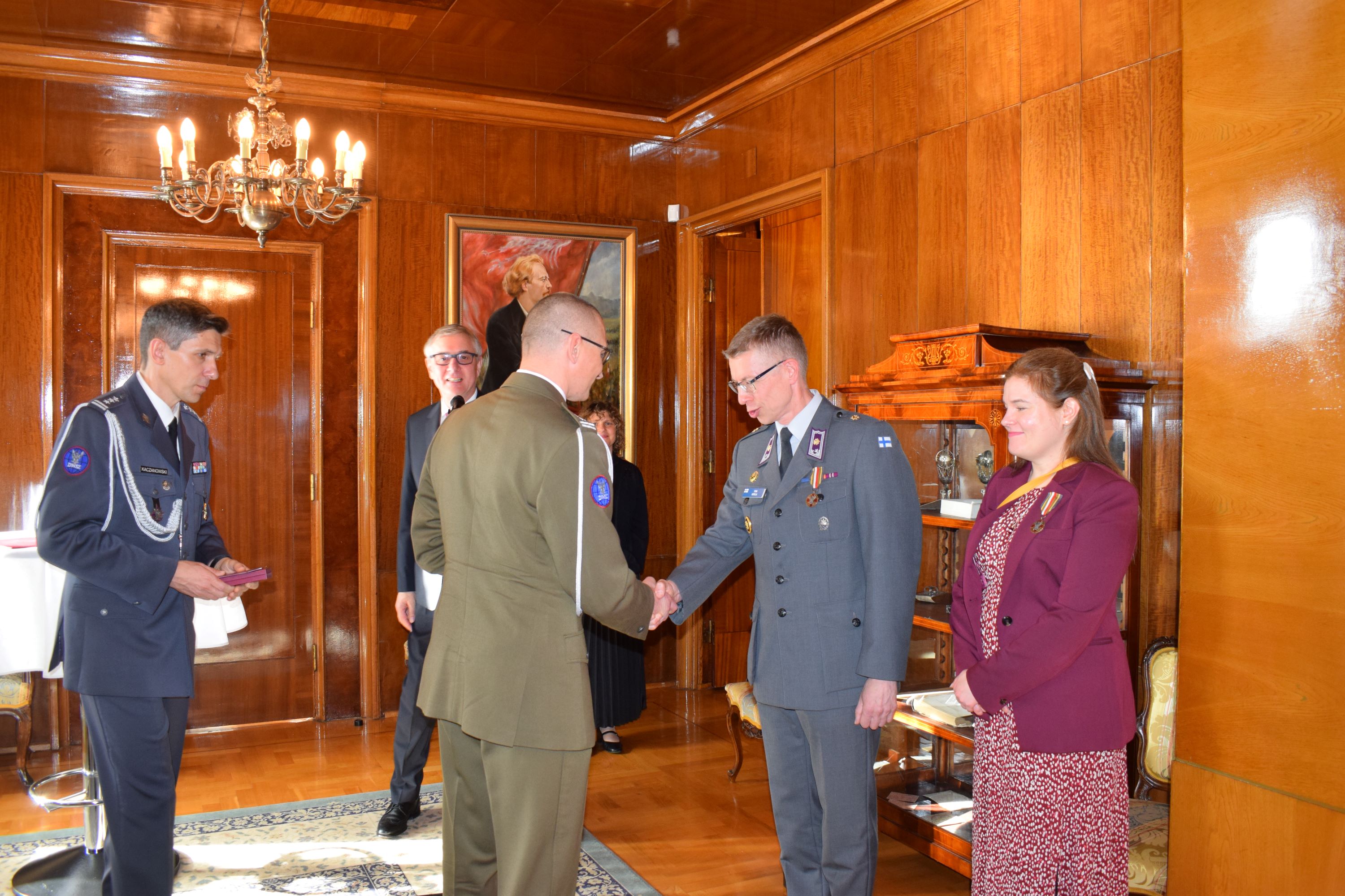 Zgodnie z decyzją nr. 2810/DK MON z dn. 8 maja 2025 r. Zostały również wręczone odznaczenia państwowe: brązowy Medal Wojska Polskiego przedstawicielom SZ Finlandii – mjr. Toni Horila, szefowi sekcji protokołu wojskowego w Dowództwie SZ Finlandii oraz Pani Elina Mӓntyniemi, pracownikowi cywilnemu Dowództwa SZ Finlandii.