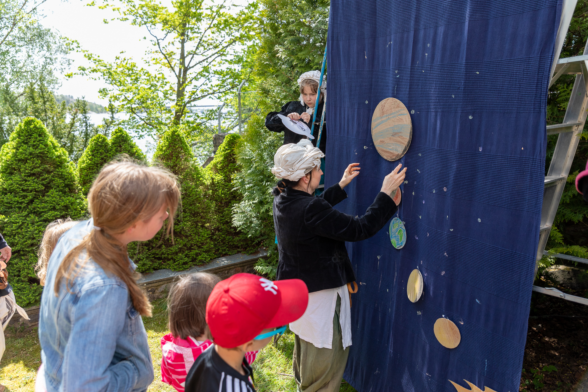 Wydarzenie rozpoczęło się w reprezentacyjnych pomieszczeniach rezydencji ambasadora, gdzie zgromadzeni goście wysłuchali prezentacji i wystąpień, przygotowanych przez uczniów i nauczycieli Szkoły Polskiej przy Ambasadzie RP w Helsinkach. Występujący w przystępnej i niekiedy zabawnej formie przybliżyli życie i dorobek Mikołaja Kopernika, odwołując się do zainteresowań i doświadczeń polskiego uczonego łączących go ze słuchaczami, co było szczególnie atrakcyjne dla najmłodszych. Następnie uczestnicy zostali zaproszeni na poczęstunek oraz do korzystania z wielu atrakcji zorganizowanych w ogrodzie Ambasady. Część udała się do namiotu historycznego przygotowanego przez atelier AnnaEnne, gdzie z pomocą artystów w strojach z czasów Kopernika dzieci i dorośli wspólnie wykonywali wizerunki planet, aby później stworzyć z nich fantastyczną mapę nieba, którą dopełniły „gwiazdy” naniesione farbą za pomocą specjalnie przygotowanych strzał z kuszy. Wielu korzystało także z możliwości zrobienia fotografii w fotobudce z lunetą na tle Układu Słonecznego. Powodzeniem cieszyły się również zabawy ruchowe i sprawnościowe, nie zabrakło nawet rywalizacji w przeciąganiu liny. Całości dopełnił koncert zespołu Pääskylä. Zgromadzeni mogli wysłuchać utworów w duchu epoki, a także piosenki o Koperniku, której tekst przygotowali uczestnicy spotkania.