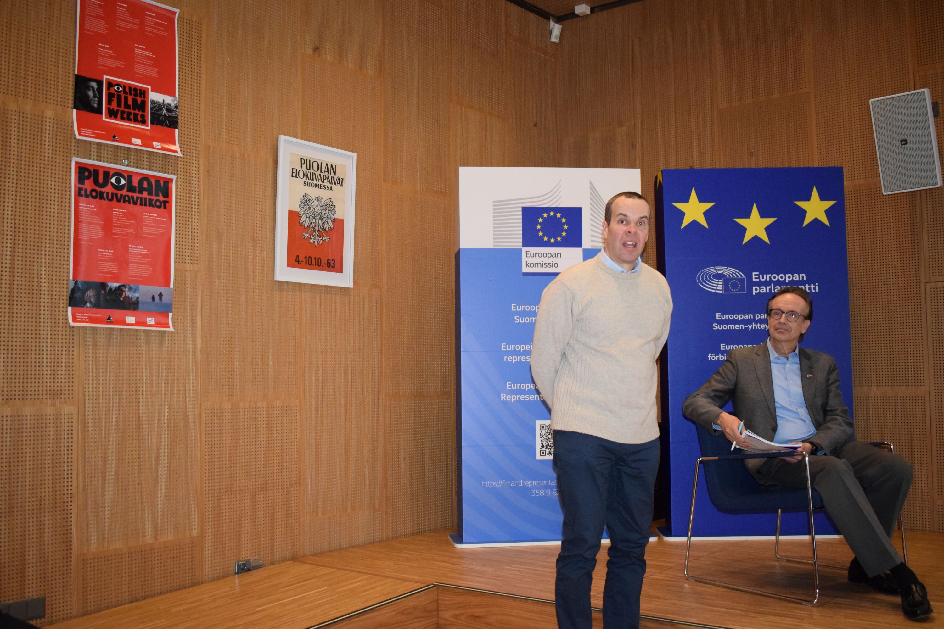 Na zakończenie seminarium dyrektor artystyczny Przeglądu Filmów Polskich, Pan Jarno Hanninen, przybliżył historię tego wieloletniego wydarzenia kulturalnego, organizowanego w Finlandii nieprzerwanie od 1963 roku. W ramach wydarzenia w siedzibie Przedstawicielstwa Komisji Europejskiej do końca kwietnia prezentowana jest wystawa plakatów filmowych z Tygodni Filmu Polskiego. Ekspozycję można oglądać od poniedziałku do piątku w godzinach 9:00–16:00.