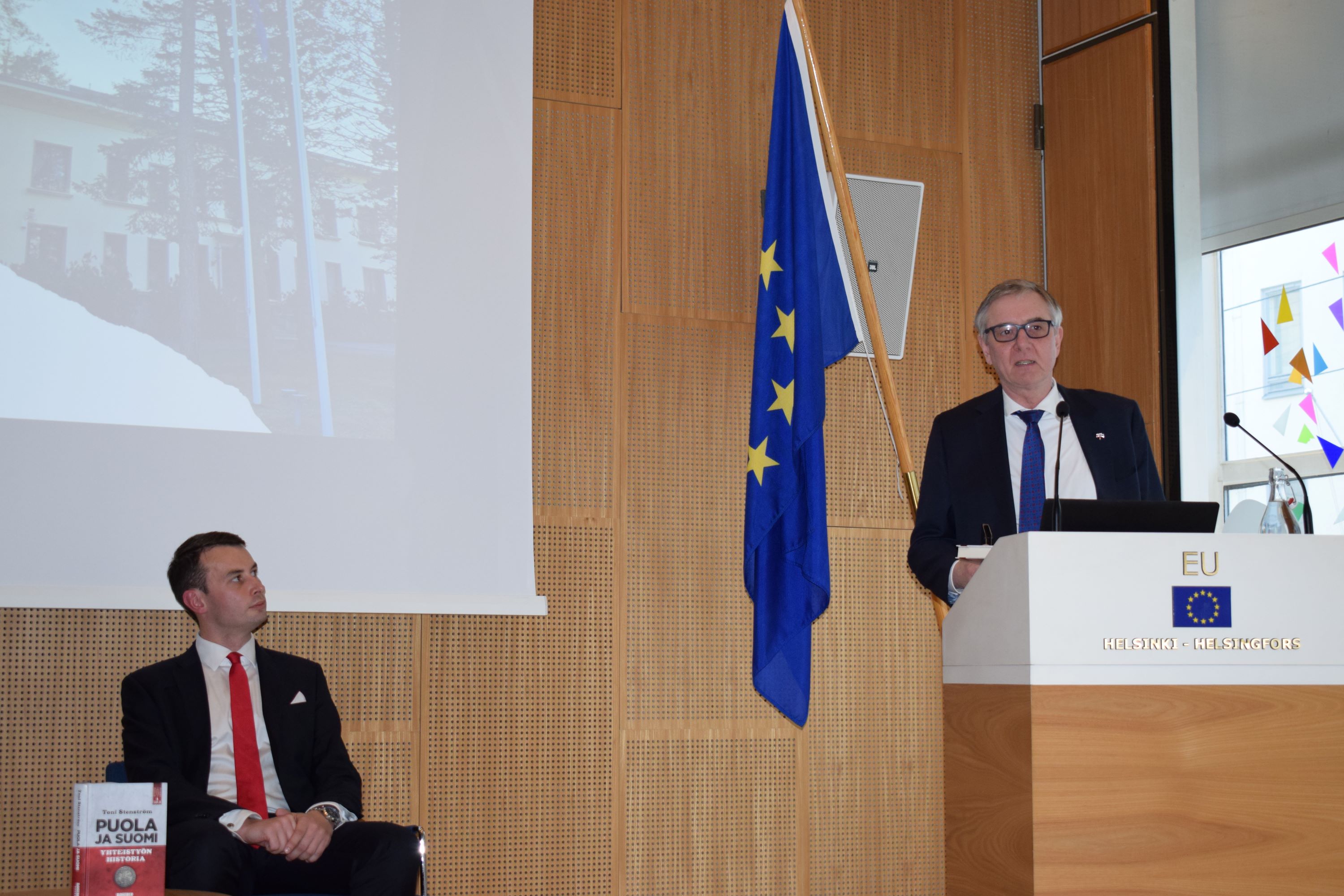 Szczególnym punktem programu była prezentacja książki Toniego Stenströma. Autor przybliżył uczestnikom proces kształtowania się relacji polsko-fińskich oraz możliwe kierunki ich rozwoju w przyszłości. Publikacja „Puola ja Suomi – Yhteistyön Historia” została wydana pod koniec 2025 r. Jest to już trzecia w ostatnich dwóch latach szczególna pozycja książkowa na rynku fińskim poświęcona Polsce o treści przychylnej i atrakcyjnej. Wcześniej ukazała się książka Erji-Outi Heino i Anttiego Blåfielda – doświadczonego dziennikarza i komentatora politycznego, wieloletniego redaktora dziennika Helsingin Sanomat – pt. „Puola on sama maata”, będąca jego ostatnią publikacją poświęconą Polsce. Kolejną ważną pozycją jest książka Pekki Haavisto – znanego fińskiego polityka, byłego ministra spraw zagranicznych i kandydata na prezydenta – pt. „Biisonipolku - matka Puolan ikimetsään”, która stanowi jego najnowszą publikację i również wpisuje się w rosnące zainteresowanie tematyką polską w Finlandii.