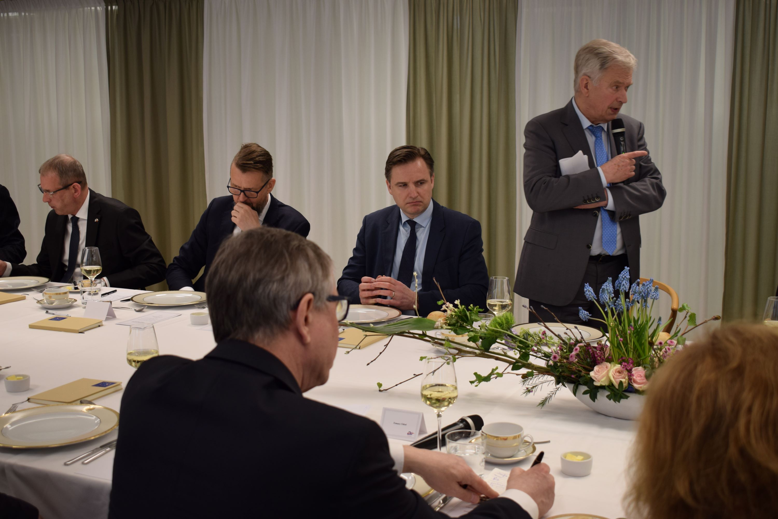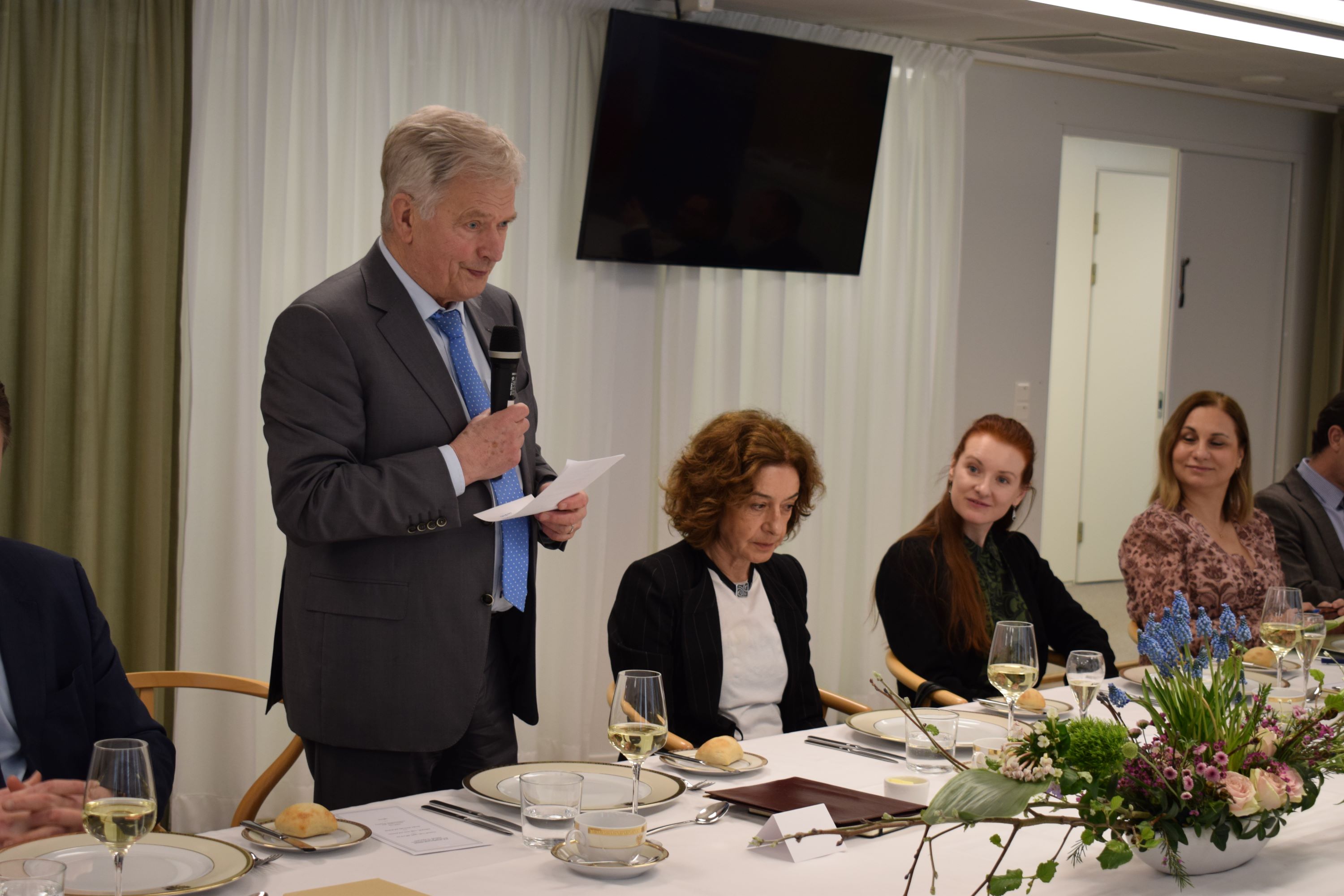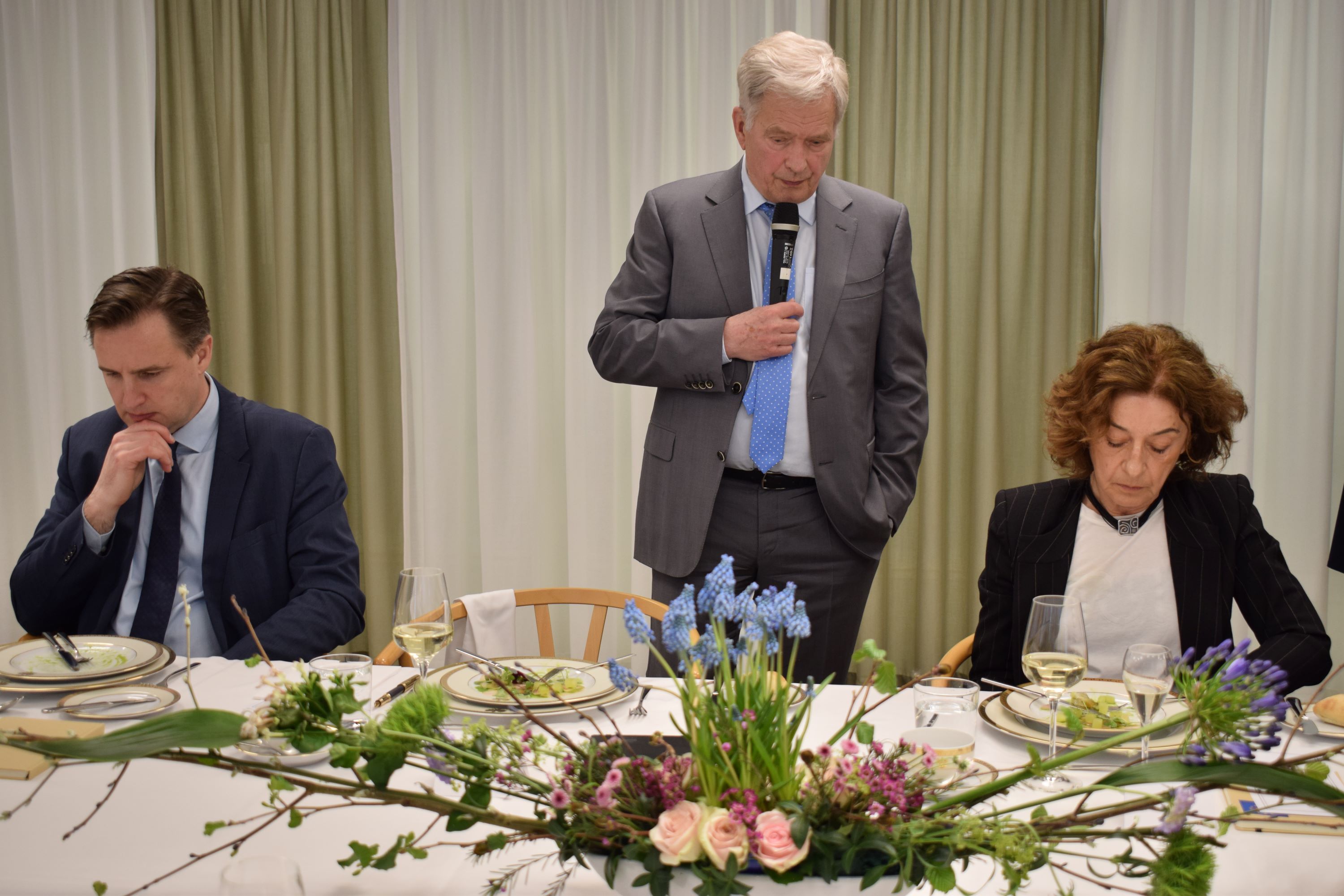 16 kwietnia zorganizowaliśmy roboczy lunch szefów misji z prezydentem Saulim Niinistö (2012-2024) w ramach lokalnego programu polskiej prezydencji w UE.