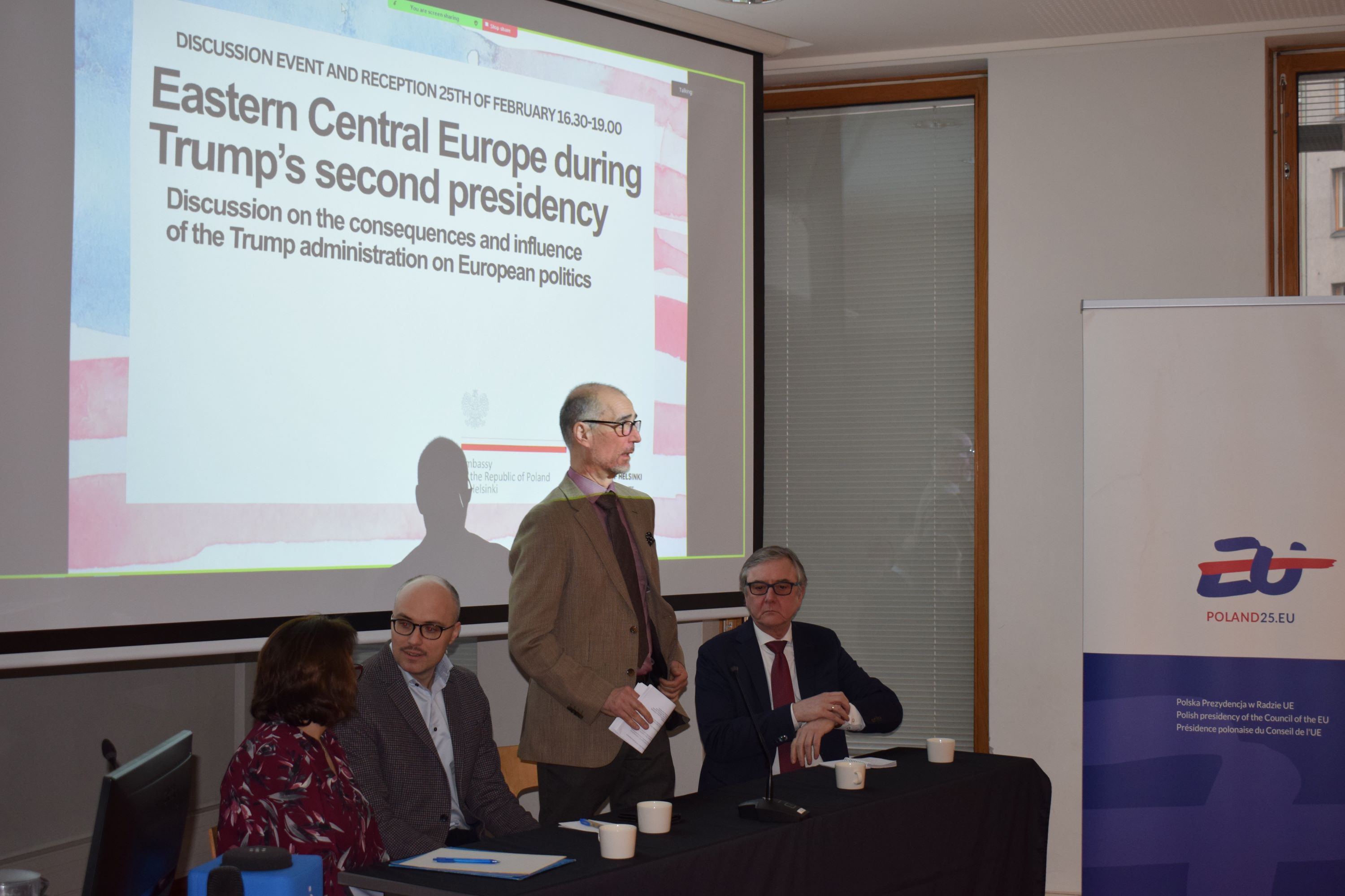 Dyskusja koncentrowała się na skutkach decyzji administracji Trumpa dla Europy Środkowo-Wschodniej, w tym negocjacjach USA-Rosja oraz o potencjalnym porozumieniu kończącym gorącą fazę wojny na Ukrainie. Panel dyskusyjny przyciągnął licznych studentów Uniwersytetu Helsińskiego oraz przedstawicieli fińskiej administracji oraz korpusu dyplomatycznego.