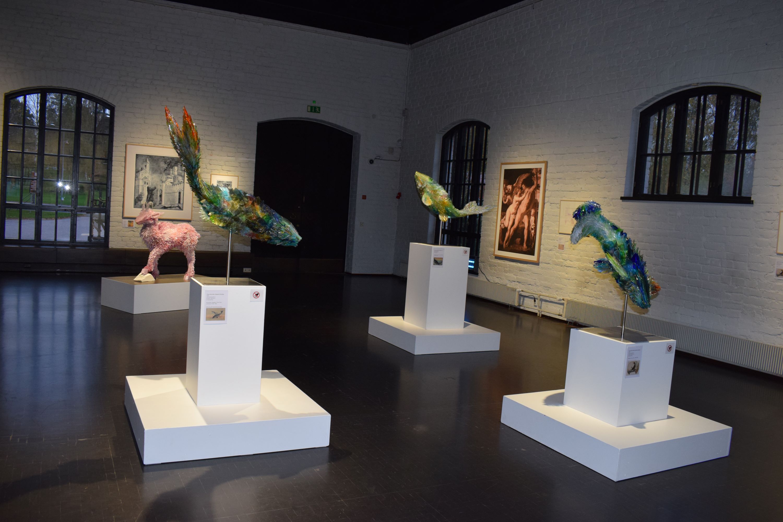 Polska artystka wykorzystuje odłamki potłuczonego szkła przy tworzeniu rzeźb zwierząt inspirowanych starymi obrazami i rysunkami. Na wystawie prezentowane są rzeźby artystki oraz oryginalne szkice i ilustracje przedstawiające złożone etapy jej twórczości.