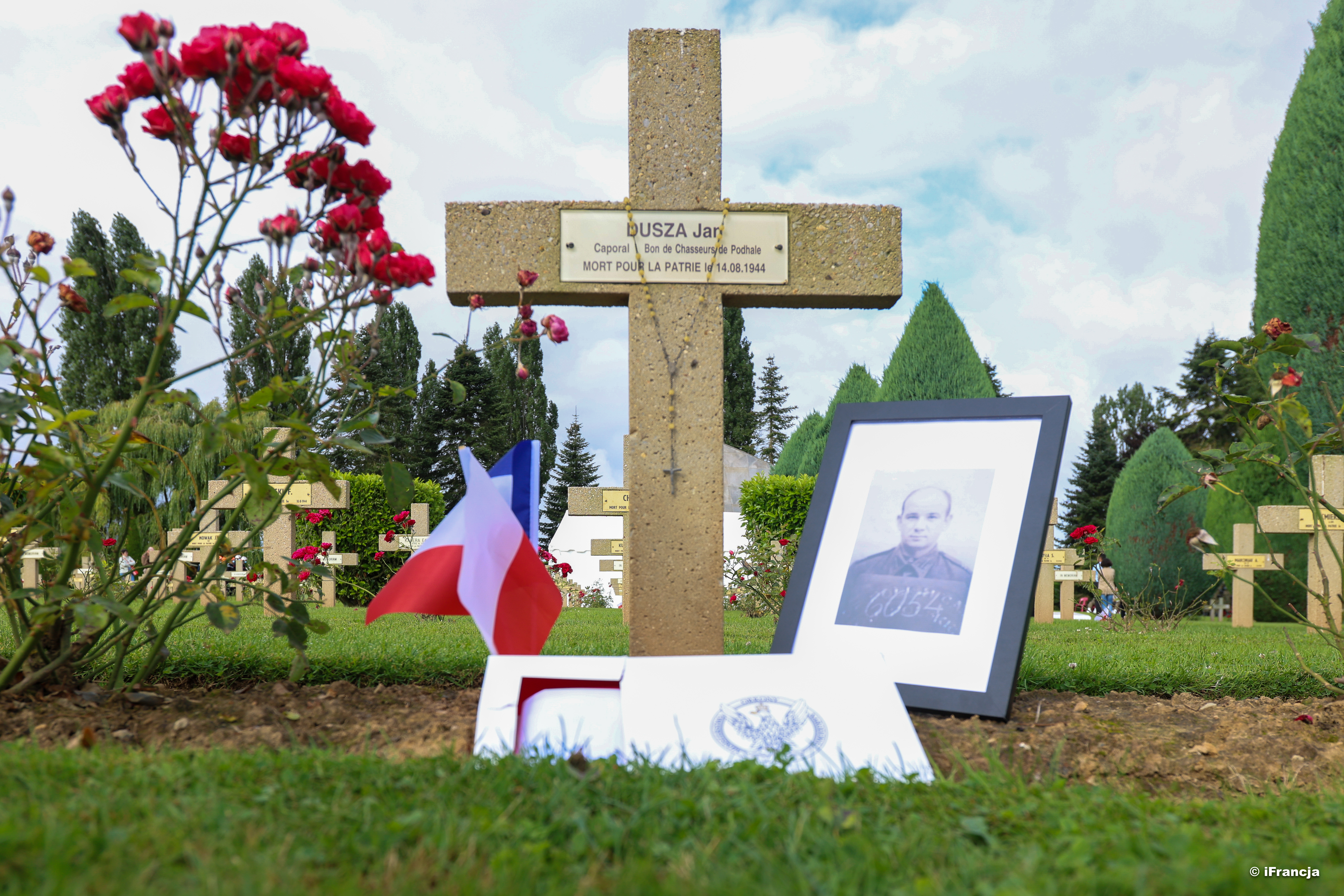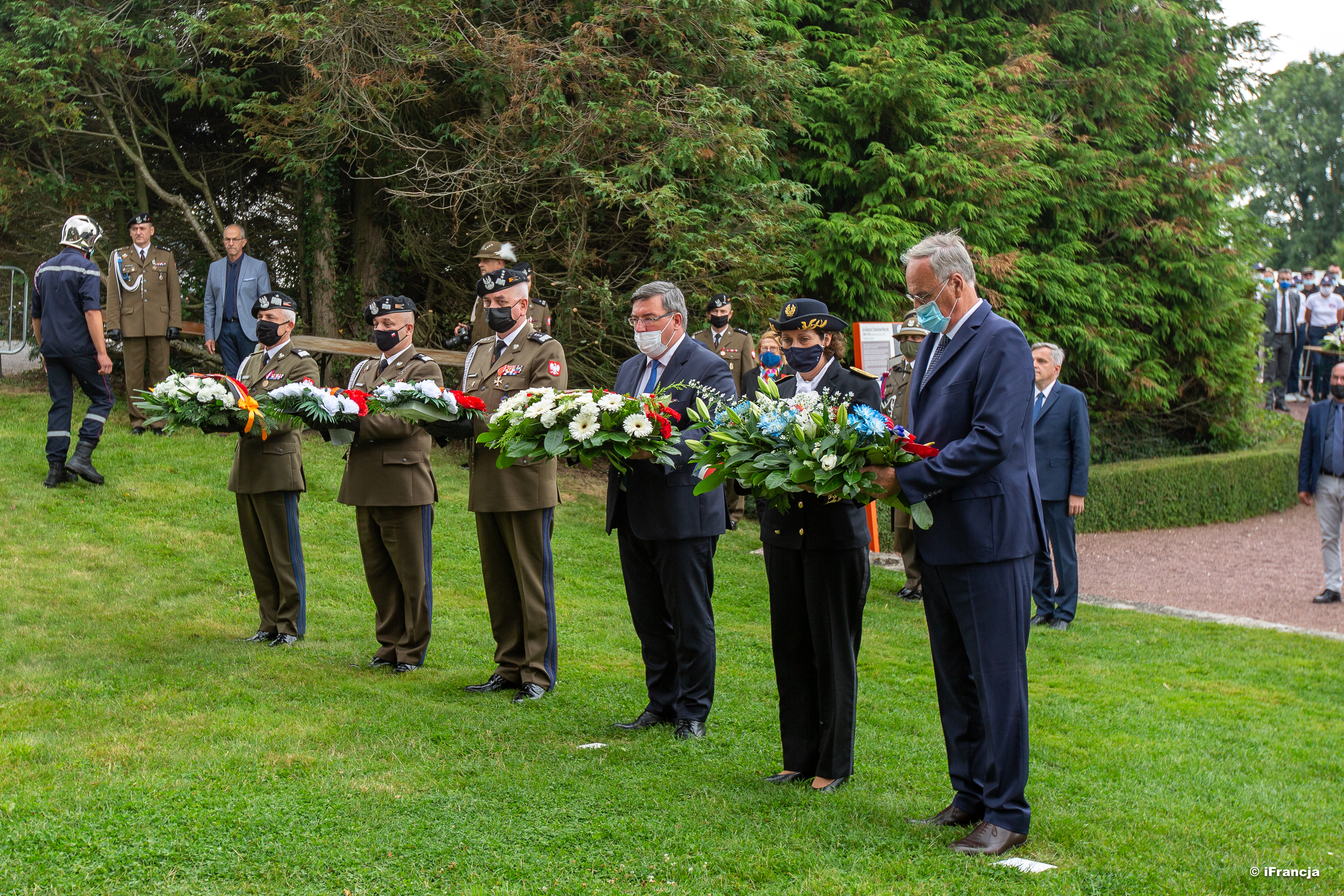 Le deuxième jour des commémorations a commencé au cimetière militaire polonais d’Urville-Langannerie, où une messe solennelle pour les morts a été célébrée par le père Bogdan Brzyś, recteur de la Mission Catholique Polonaise en France. Les autorités françaises ont été représentées notamment par le sous-préfet Nathan de Lara ainsi que par les maires des communes locales. Lors de la cérémonie une plaque avec le nom du caporal Jan Dusza a été inaugurée sur une tombe jusqu’à présent anonyme. Ce soldat polonais a été tout récemment identifié grâce aux recherches menées par des spécialistes de l’Université de Médecine de Poméranie en coopération avec le Ministère de la Culture, du Patrimoine National et du Sport dans le cadre du projet « Les Soldats des Forces Armées polonais perdus mais non oubliés ». Les commémorations ont pris fin à Potigny où les représentants des autorités polonaises et françaises ont déposé des fleurs devant une plaque en mémoire de la 1ère Division Blindée du général Stanisław Maczek.