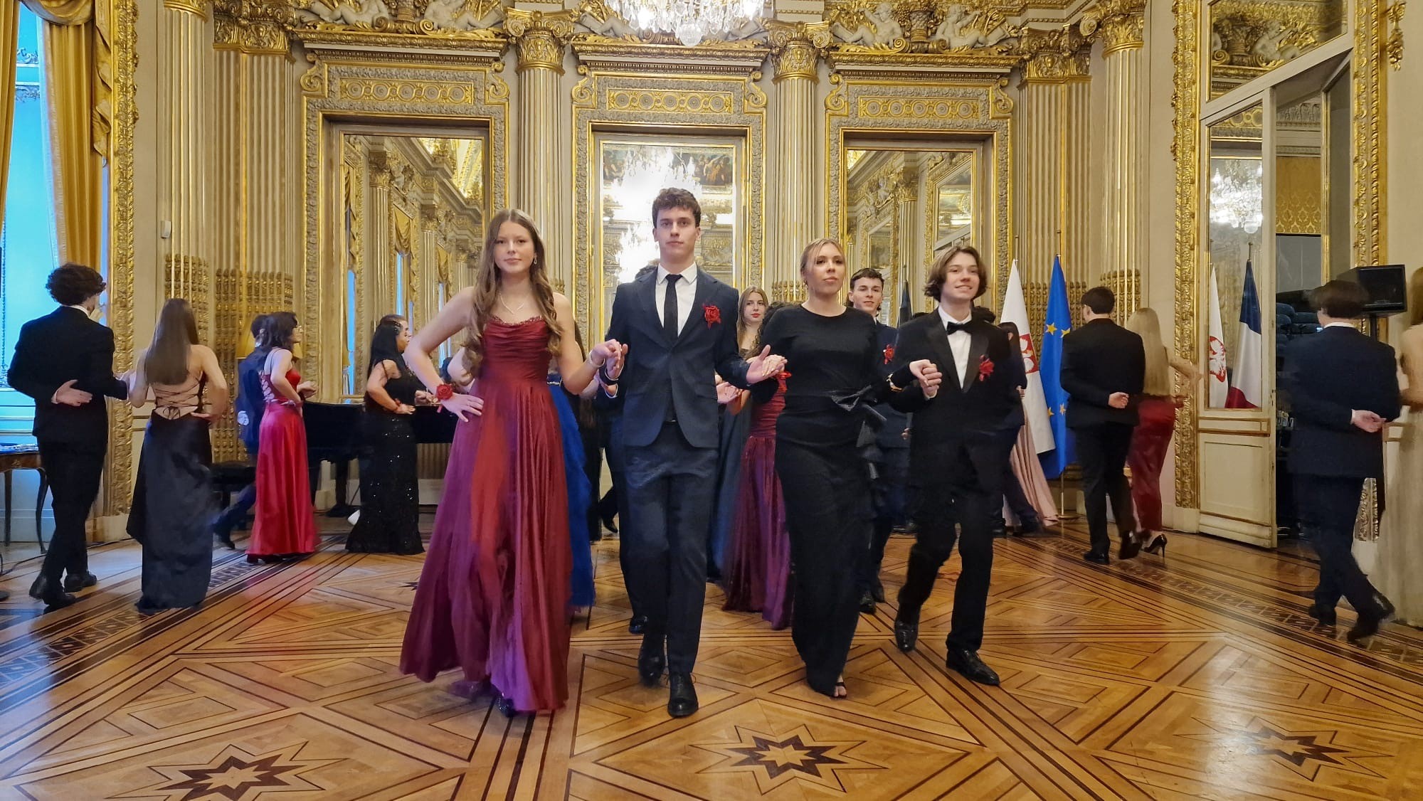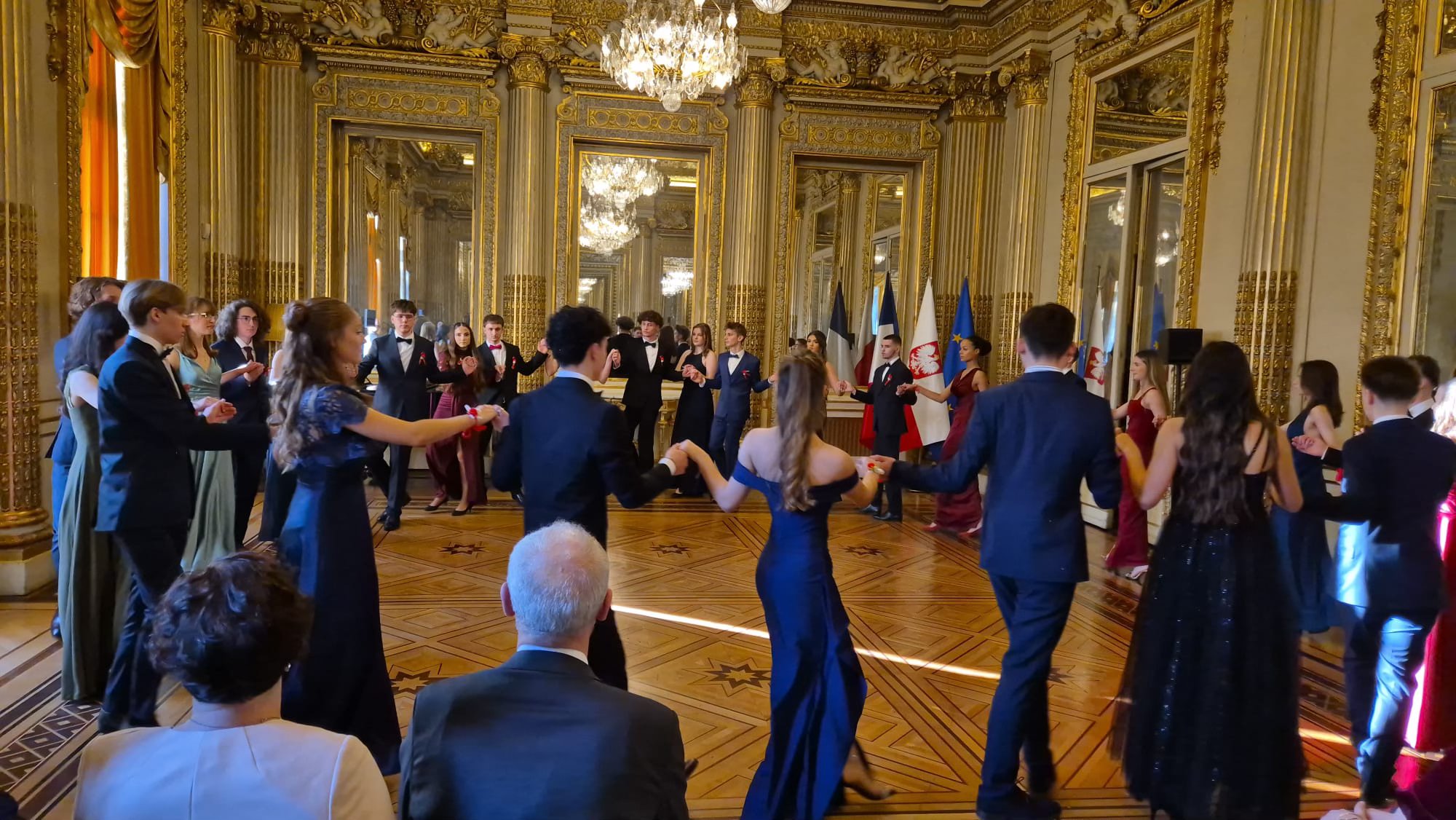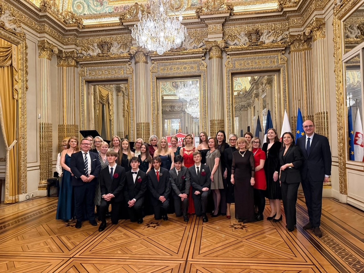 Les 24 et 31 janvier 2026, à l'Ambassade de la République de Pologne à Paris, les élèves des classes terminales des Écoles polonaises de Paris auprès de l'Ambassade de la République de Pologne à Paris - l'École Adam Mickiewicz et l'École Sainte-Geneviève, ainsi que des sections polonaises des lycées de Saint-Germain-en-Laye et Montaigne et des cours de polonais langue étrangère à Paris, ont solennellement dansé la Polonaise. Les élèves ont présenté aux invités présents à l'Ambassade de riches programmes artistiques.