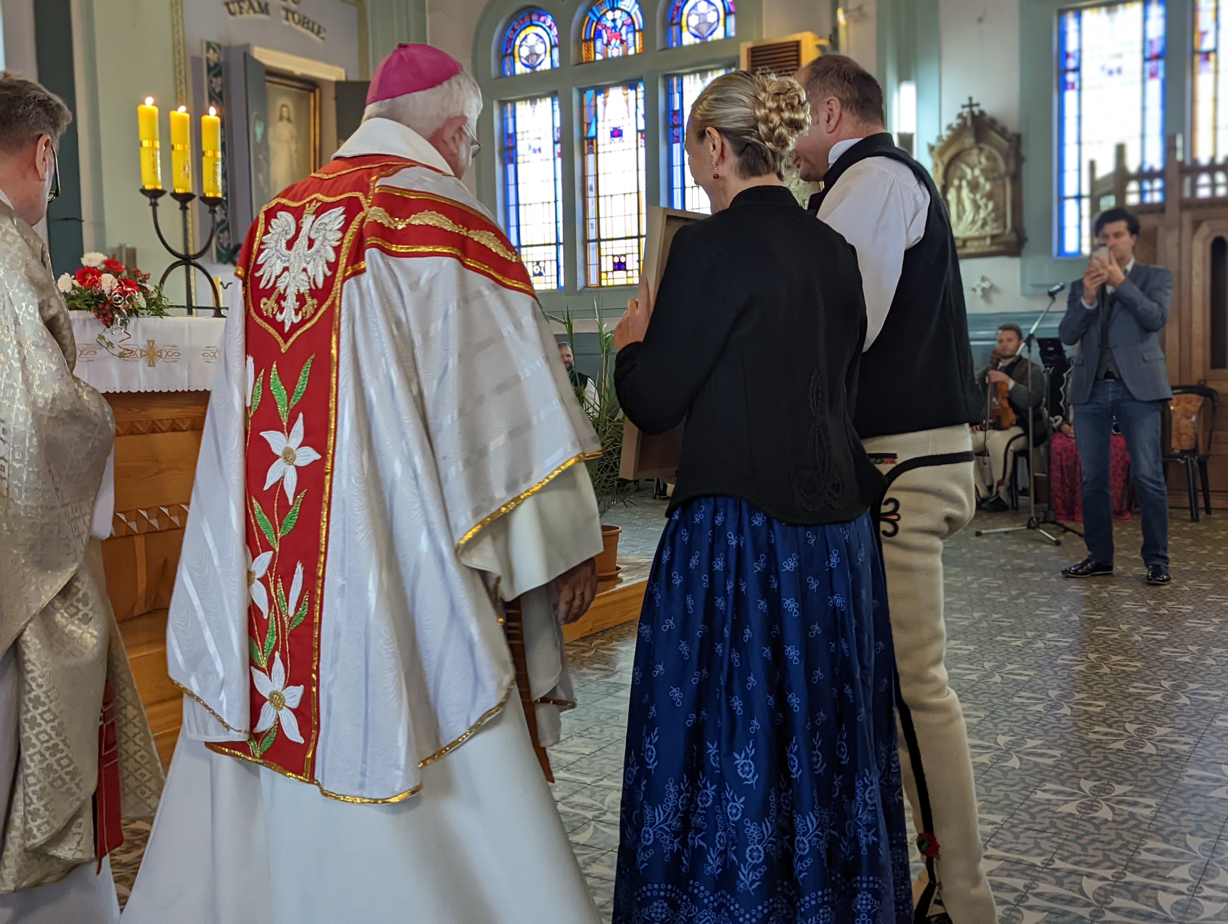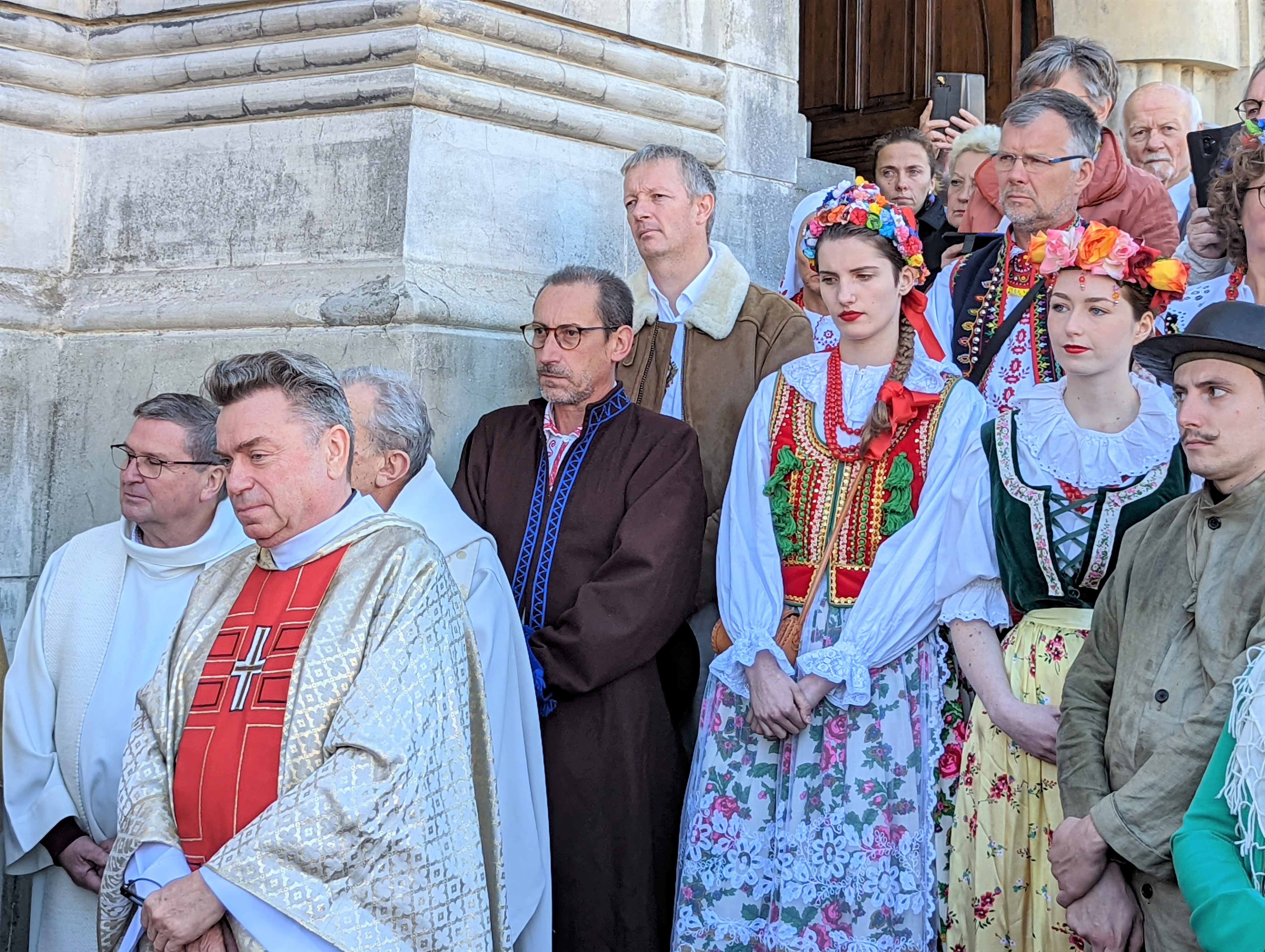 Dans son discours, l'Ambassadeur Jan Emeryk Rościszewski a exprimé son estime pour ses compatriotes vivant dans le nord de la France depuis des générations, qui préservent toujours les traditions polonaises tout en œuvrant au bénéfice de l'amitié franco-polonaise. Il a également exprimé ses remerciements au Maire de Franconville, Tony Franconville, pour sa bienveillance et le soutien apporté à la communauté polonaise dans ses nombreuses initiatives. Il a remercié aussi le Président du Collectif Polonia des Hautes-de-France, Edmund Oszczak, et le curé de la paroisse polonaise, Leszek Wojciechowski, pour l'organisation de la cérémonie. Il a également souligné l'extraordinaire solidarité de la communauté polonaise de Dourges, qui a été l'une des premières à organiser plusieurs transports humanitaires pour la population ukrainienne touchée par l'invasion russe.