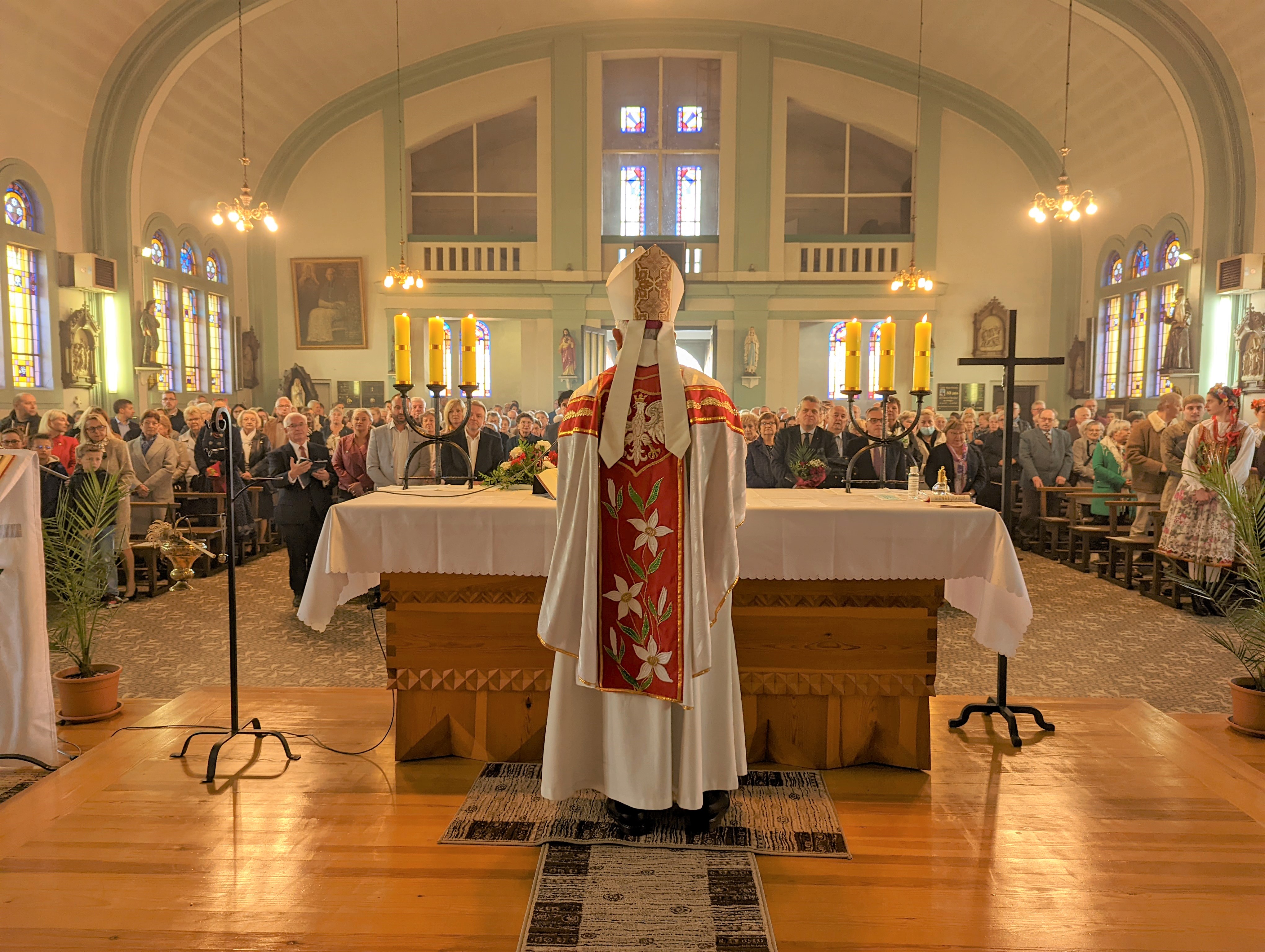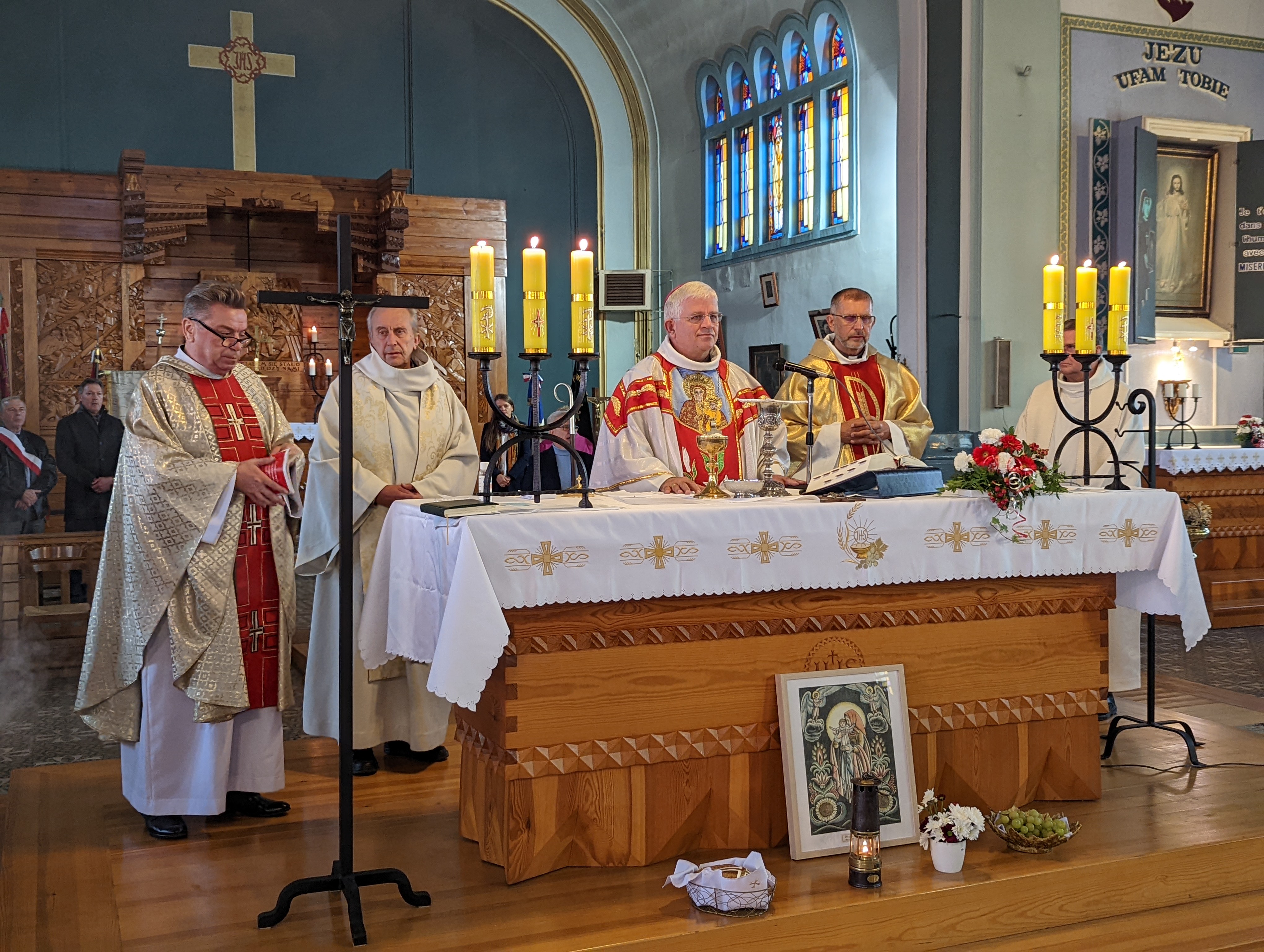 Les célébrations, auxquelles ont participé l'Ambassadeur de Pologne en France Jan Emeryk Rościszewski, le Consul de la République de Pologne à Paris Andrzej Szydło, le Maire de Raszków, ville partenaire de Dourges, Jacek Bartczak, et le Maire de Dourges, Tony Franconville, ont commencé par une messe solennelle célébrée par l'évêque d'Arras, Monseigneur Olivier Leborgne, et le recteur de la Mission catholique polonaise, père Bogusław Brzys. Lors de la messe se sont produit la chorale locale Moniuszko ainsi que l'ensemble "Górale de Dourges".