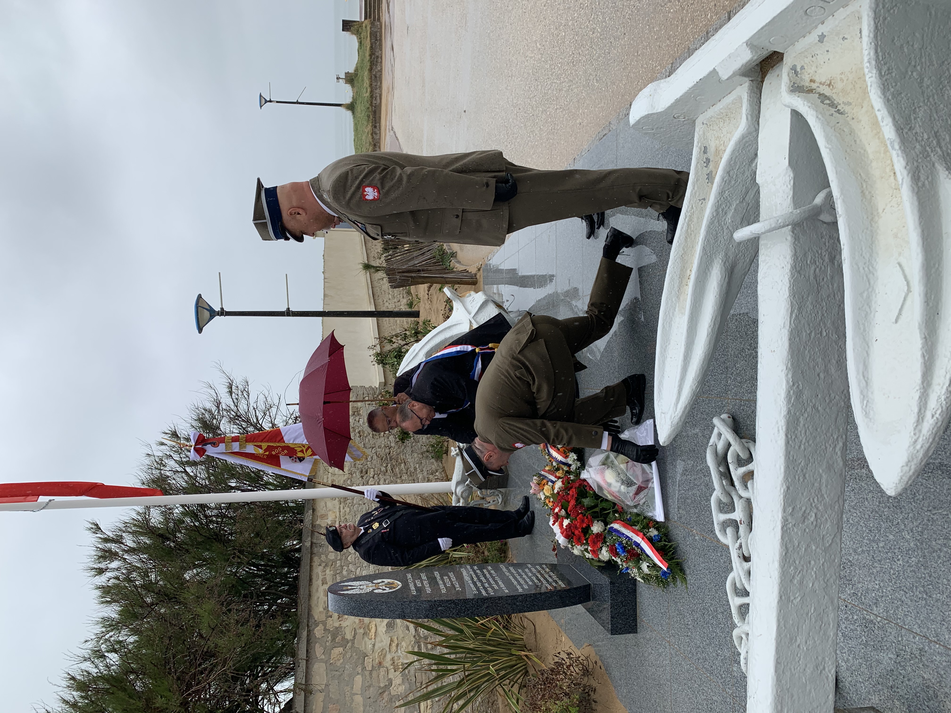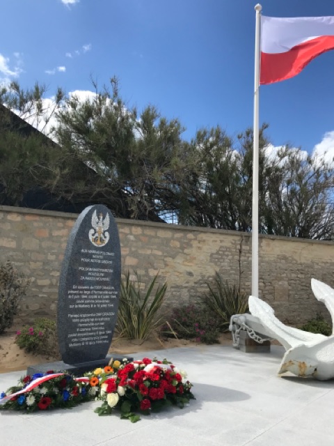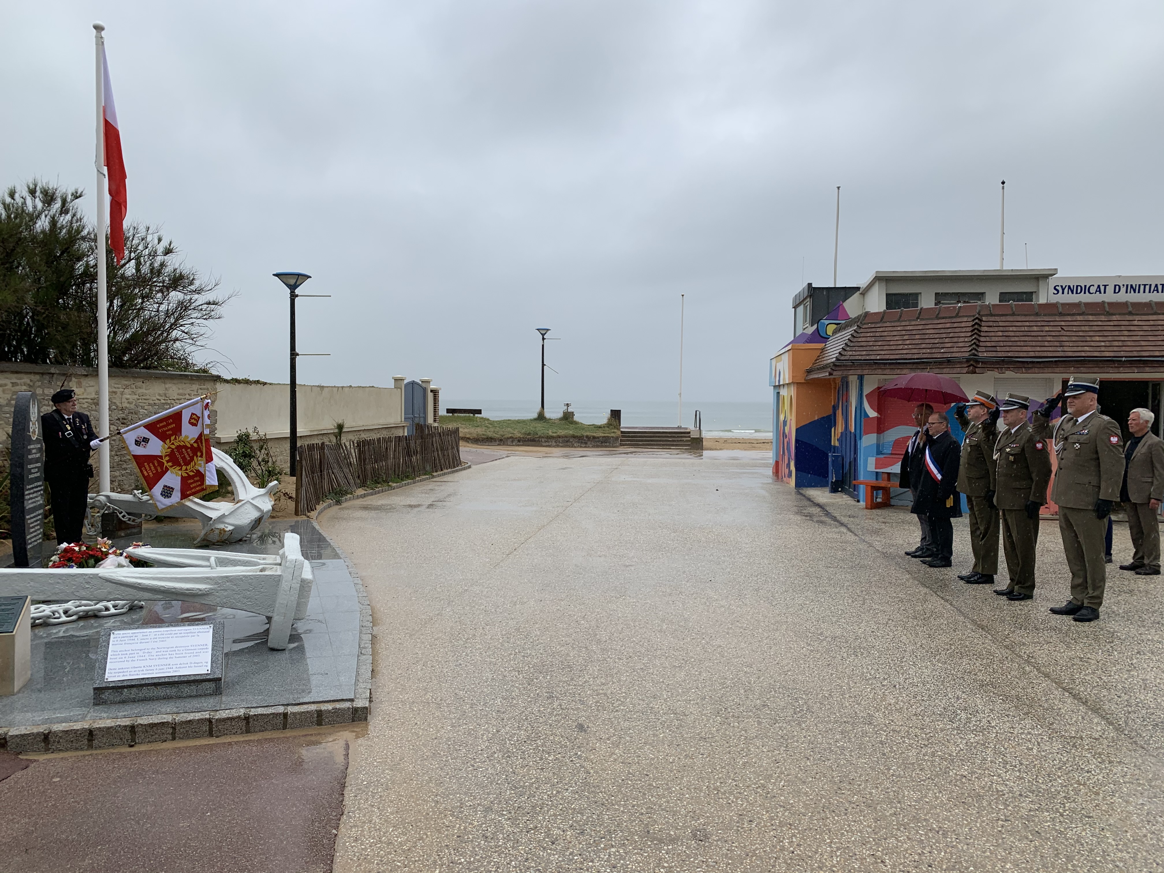 Pour célébrer le 76e anniversaire du Débarquement en Normandie, le 6 juin dernier l'Ambassadeur Tomasz Młynarski et l’Attaché de Défense le colonel Marek Kurkowicz ont également déposé une gerbe devant le monument à Hermanville-sur-Mer dédié aux marins polonais participant à la couverture de l'opération.
