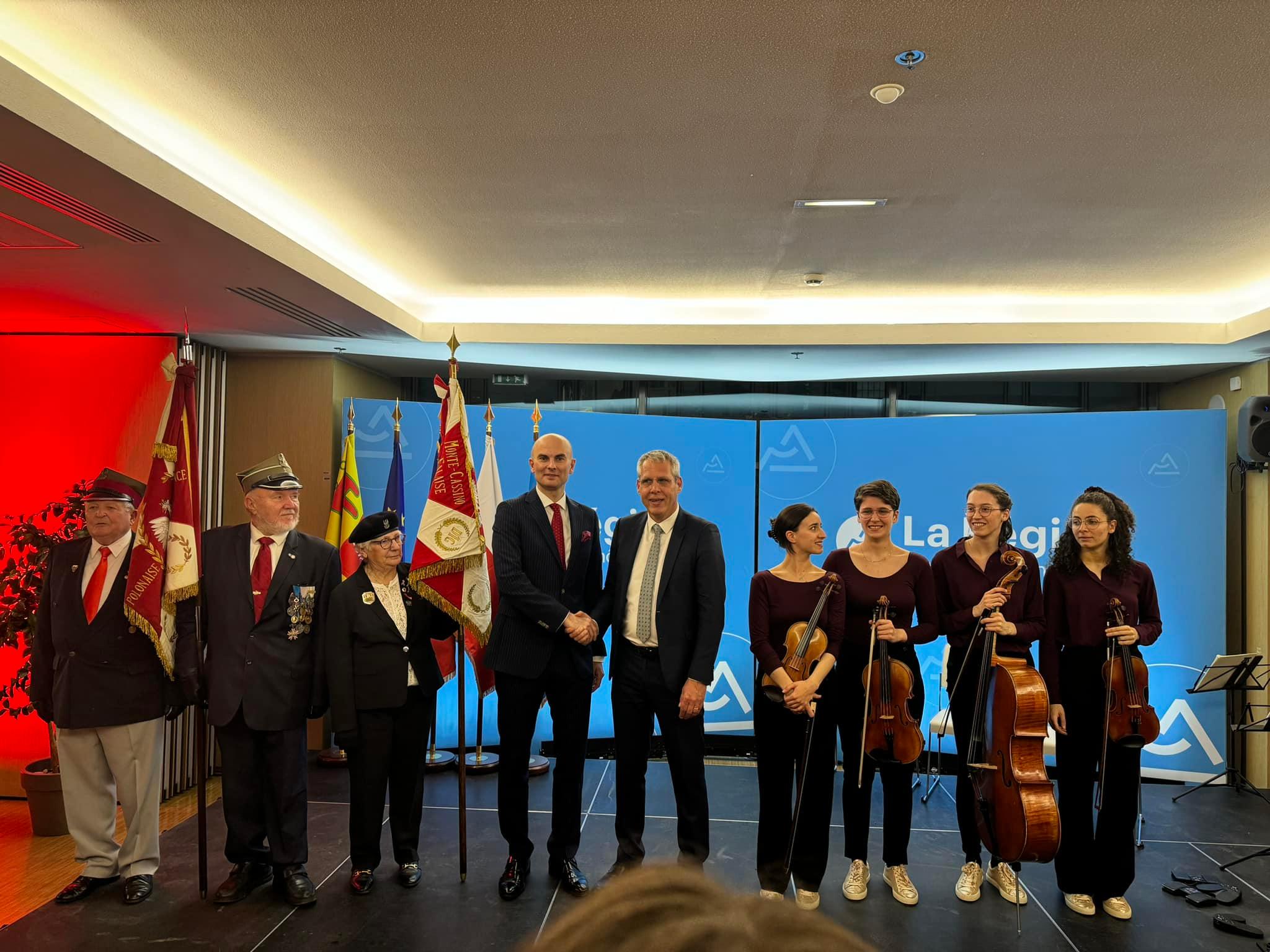 En présence du Vice-Président du Conseil Régional Auvergne Rhône-Alpes chargé des Affaires Internationales, Mr. Philippe Meunier, l'événement s'est déroulé en présence de représentants des autorités locales, du corps consulaire et des représentants de la communauté polonaise de la région.
