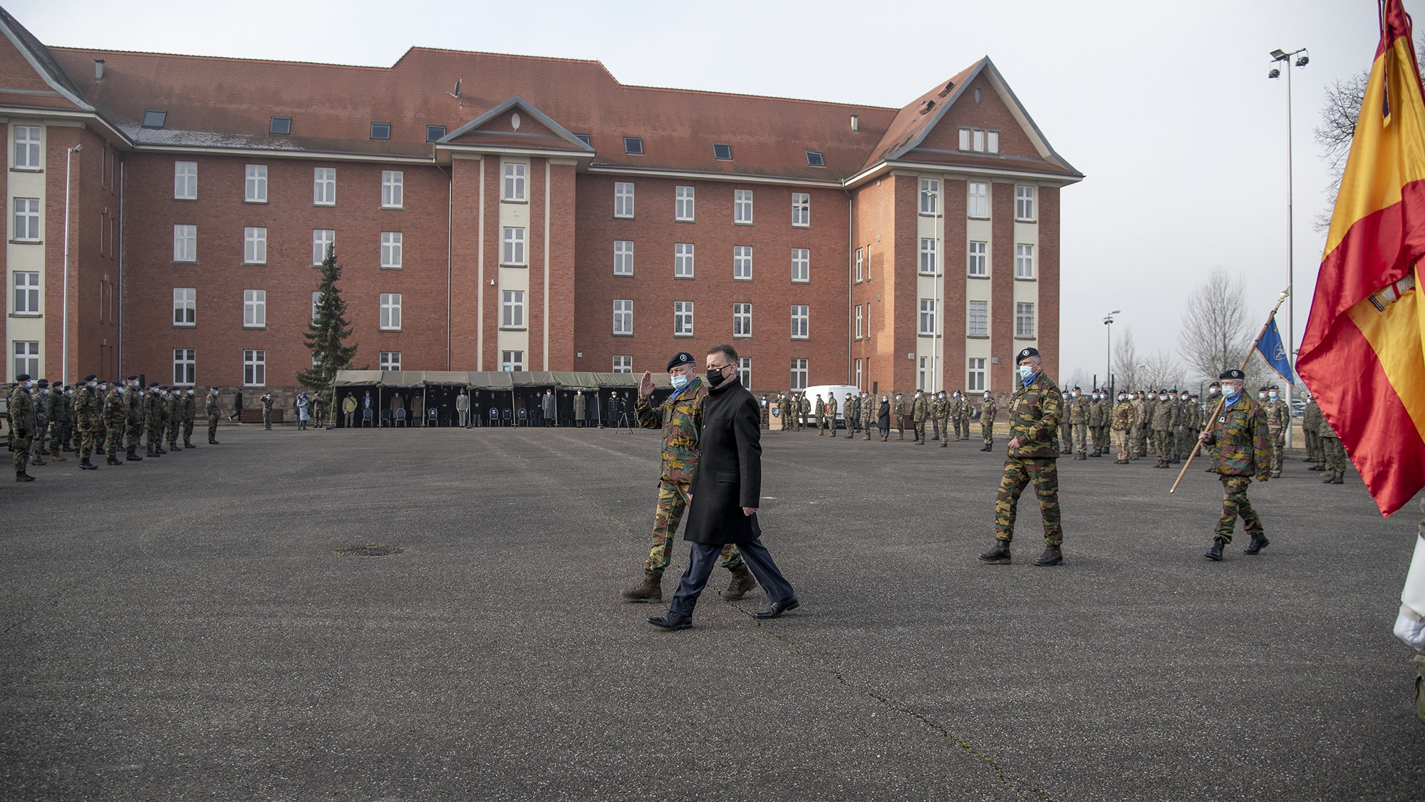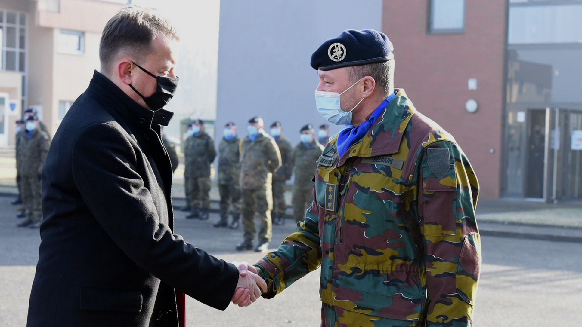 La cérémonie d'accueil de la Pologne en tant que sixième nation-cadre au sein des structures de l'Eurocorps a commencé par une rencontre du Ministre avec le lieutenant-général Peter Devogelaere, commandant de l'Eurocorps ainsi qu’avec les chefs d'état-major des nations-cadres.