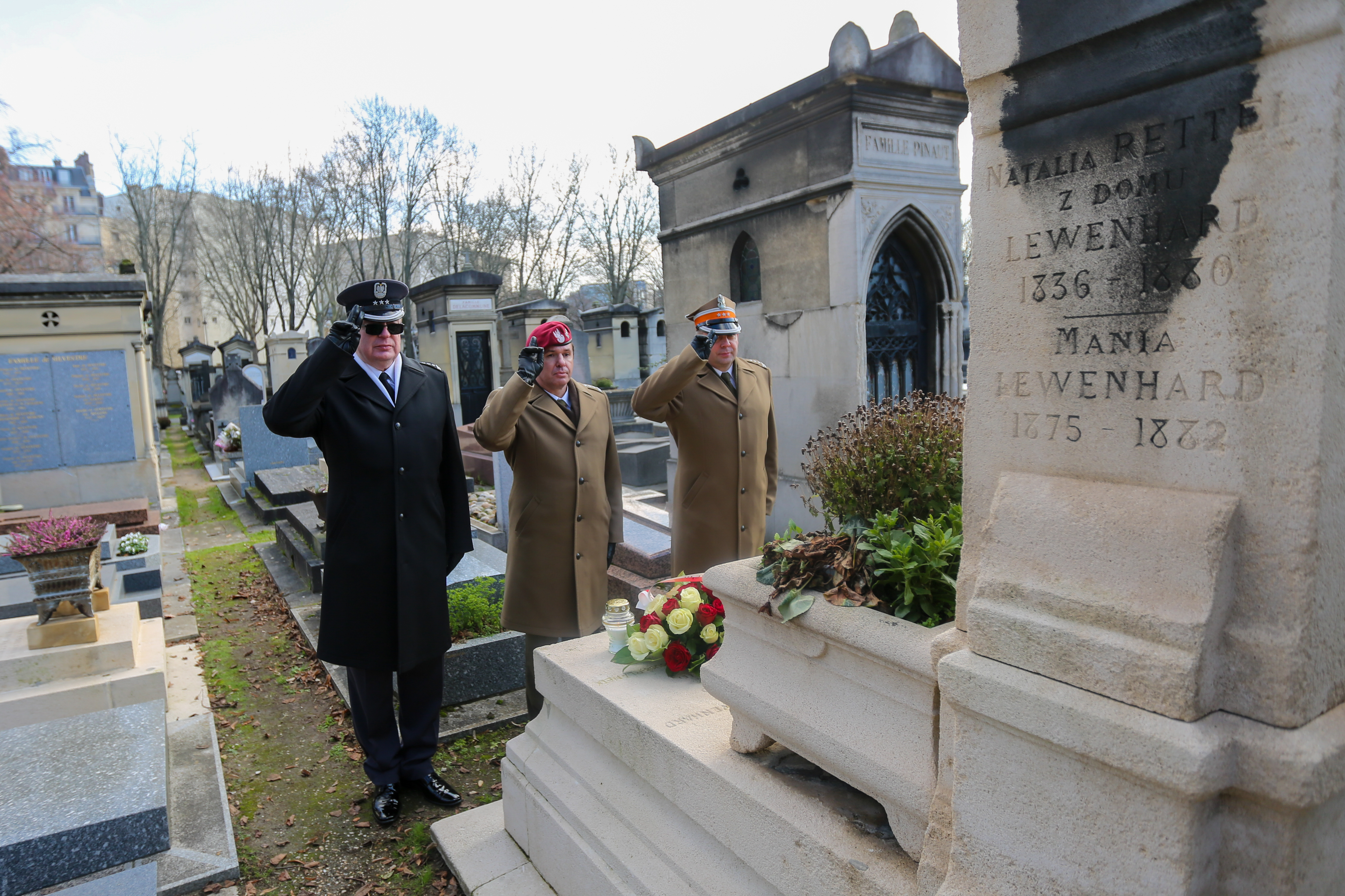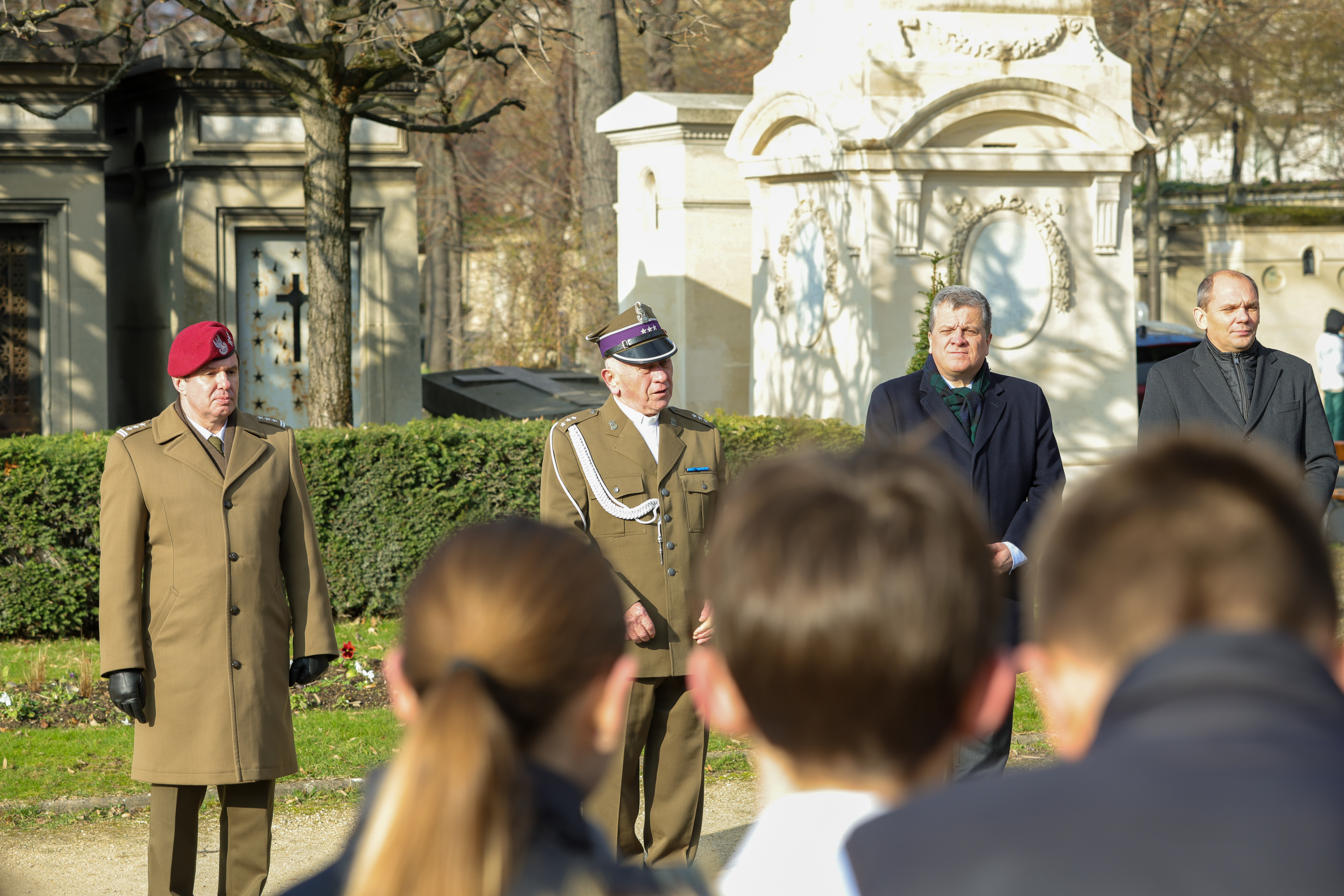 Ensuite, l’Ambassadeur Jan Emeryk Rościszewski et l’Ambassadeur Aleksiejūnas avec les Attachés et les élèves se sont rendu au cimetière de Montparnasse pour honorer la mémoire des Polonais ayant participé à l’insurrection.