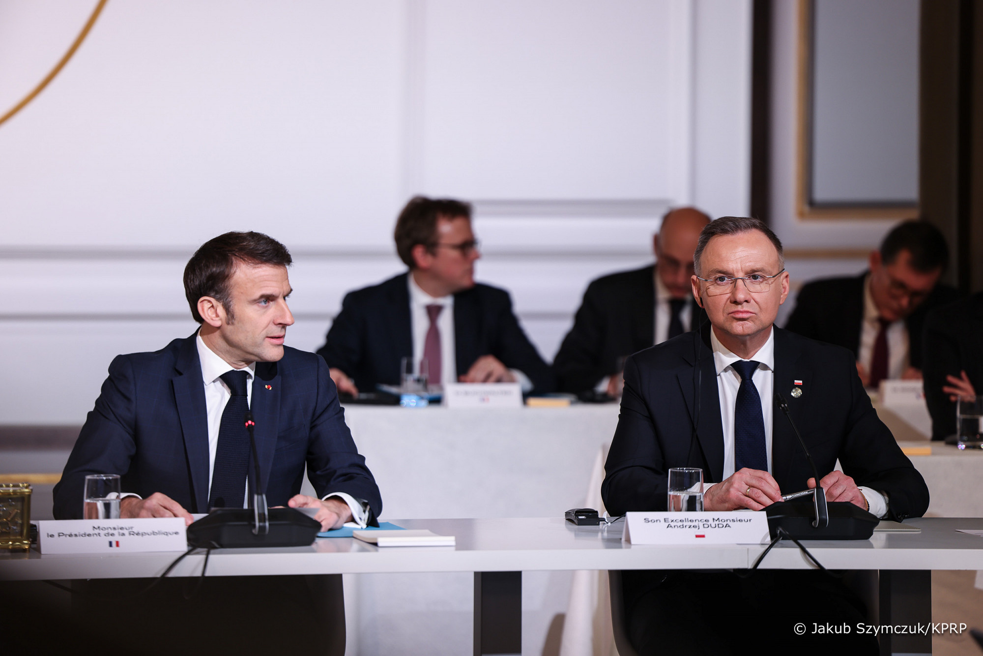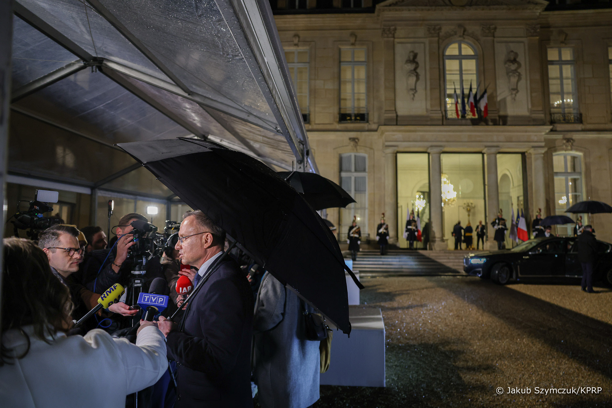 Le Président était accompagné à Paris par Marcin Mastalerek, chef de son cabinet, Jacek Siewiera, chef du Bureau de la Sécurité Nationale et Mieszko Pawlak, chef du Bureau de Politique Internationale.