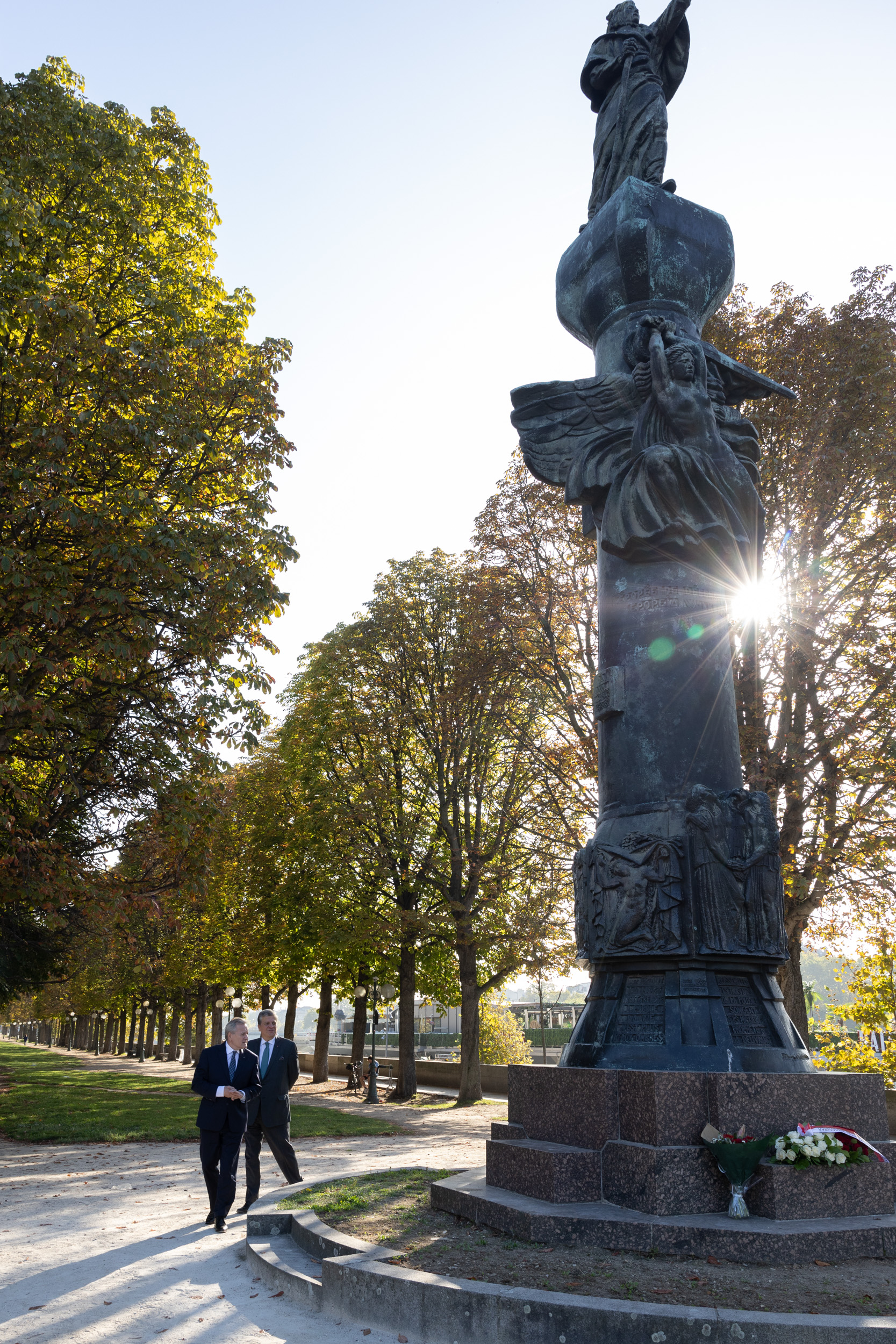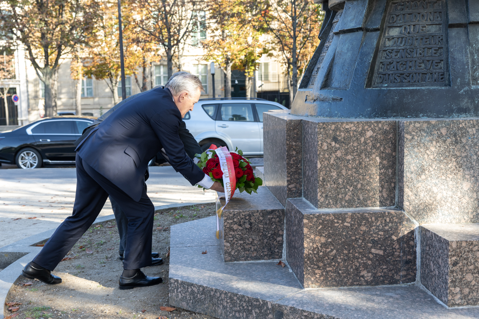 La visite du Ministre a commencé par le dépôt d’une gerbe de fleurs au monument d’Adam Mickiewicz à Paris, en compagnie de l’Ambassadeur Jan Emeryk Rościszewski.