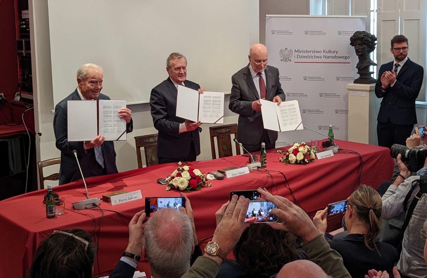 Lors de la cérémonie organisée dans ce lieu particulier, le Ministre professeur Piotr Gliński, le Président de la Société Historique et Littéraire Polonaise, professeur C. Pierre Zaleski et le Président de l’Académie polonaise des arts et sciences, professeur Jan Ostrowski, ont signé un accord fondateur d’une nouvelle institution culturelle : Institut Bibliothèque Polonaise de Paris.