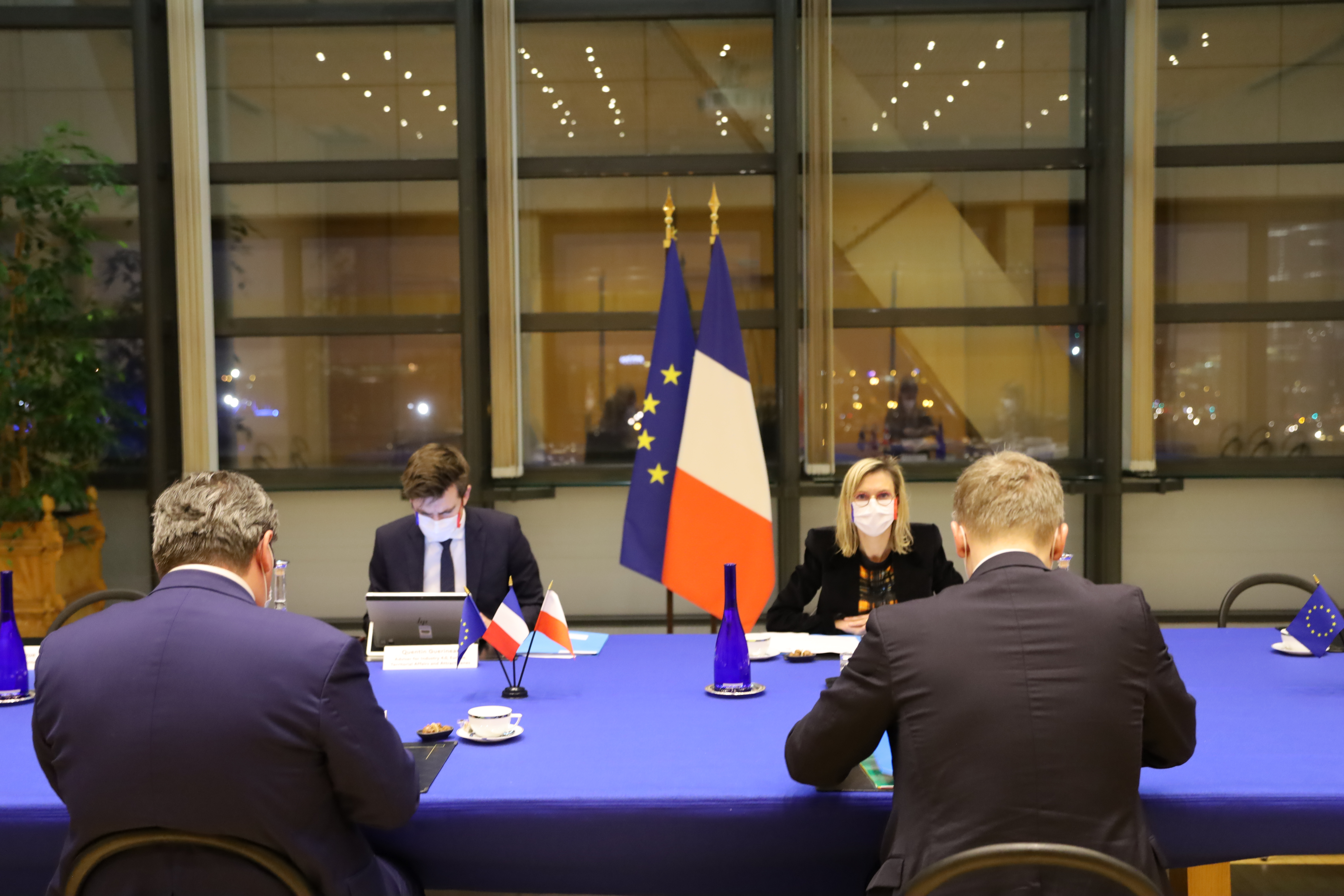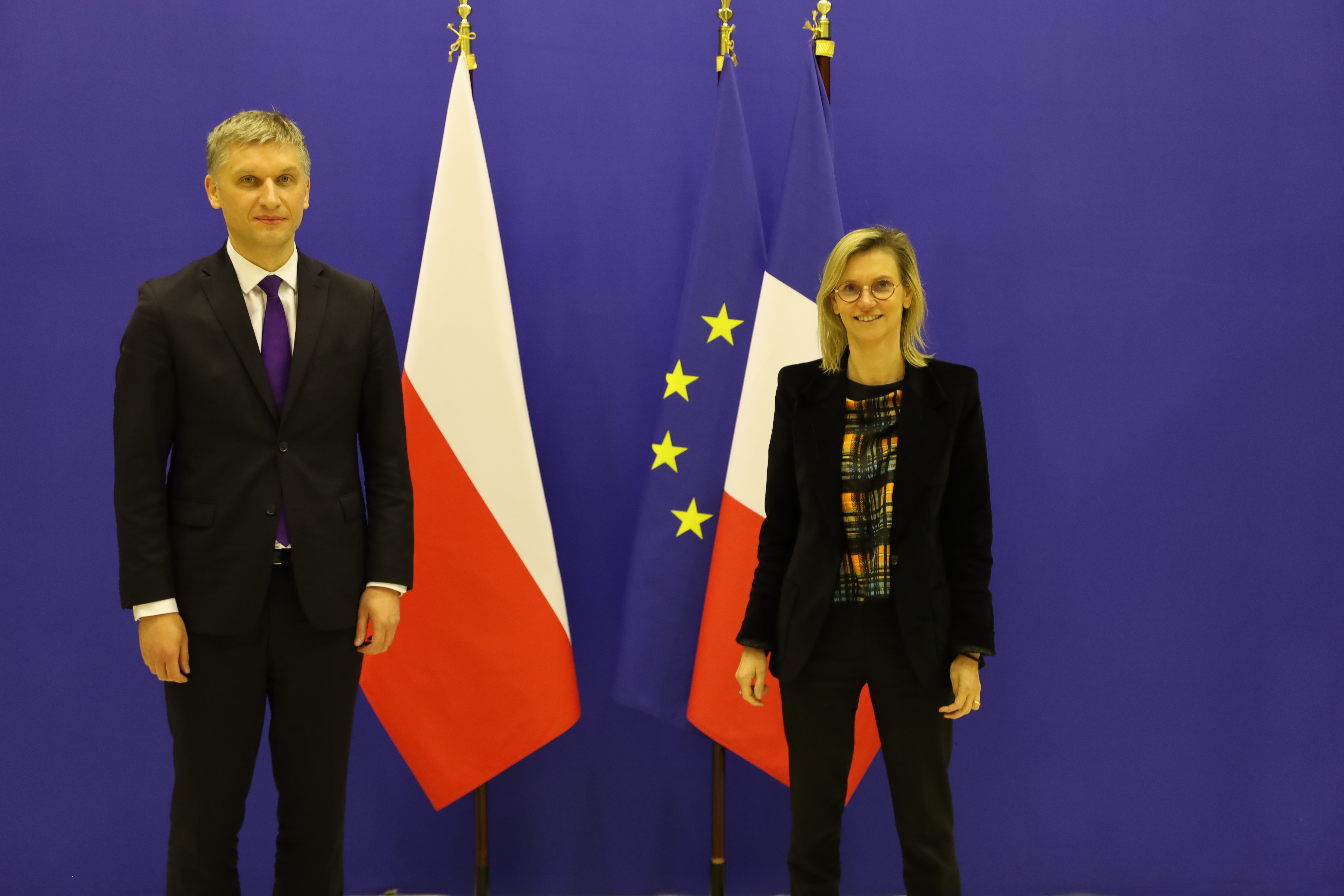 Le Ministre a ensuite rencontré le Ministre de l'Économie, des Finances et de la Relance Bruno Le Maire. Au cours de la conversation, Piotr Nowak a indiqué qu'il appréciait le fait que la Présidence française soit déterminée à impliquer le Conseil Compétitivité dans le suivi des négociations du paquet Fit for 55. Il a également souligné que le système ETS joue un rôle important dans la transformation verte actuelle. La Pologne demande sa réforme afin de mettre fin à la manipulation des prix sur le marché ETS et de limiter le rôle des institutions financières dans la fixation de son prix. Lors de la rencontre avec le Ministre français de l'Économie, il a également abordé la question du mécanisme CBAM et de son impact sur la compétitivité de l'économie européenne.