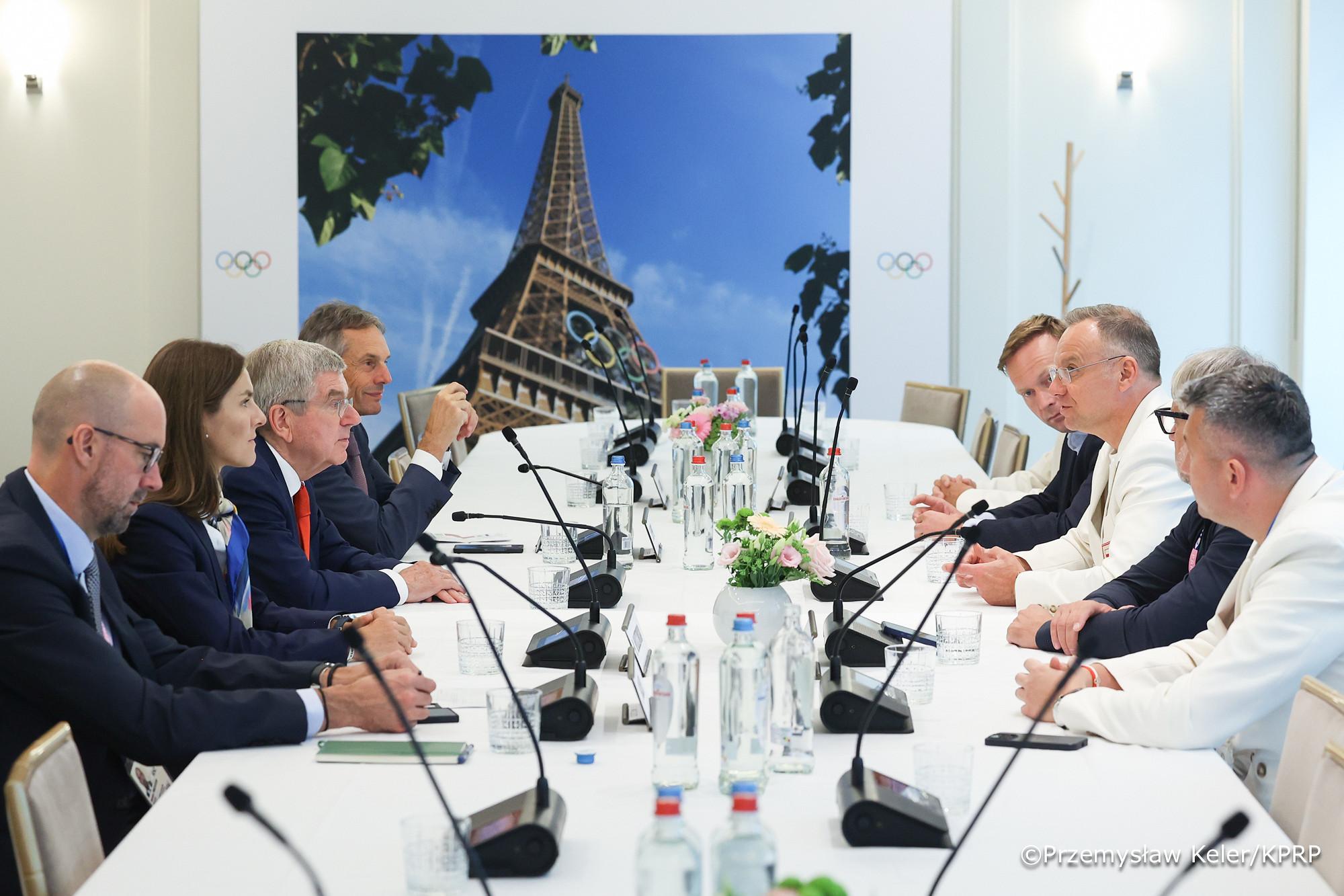 Arrivé à Paris le 25 juillet, le Président Andrzej Duda a assisté à un dîner donné par le président du Comité international olympique, Thomas Bach, à l'occasion des Jeux de la XXXIIIᵉ olympiade de l'ère moderne.
