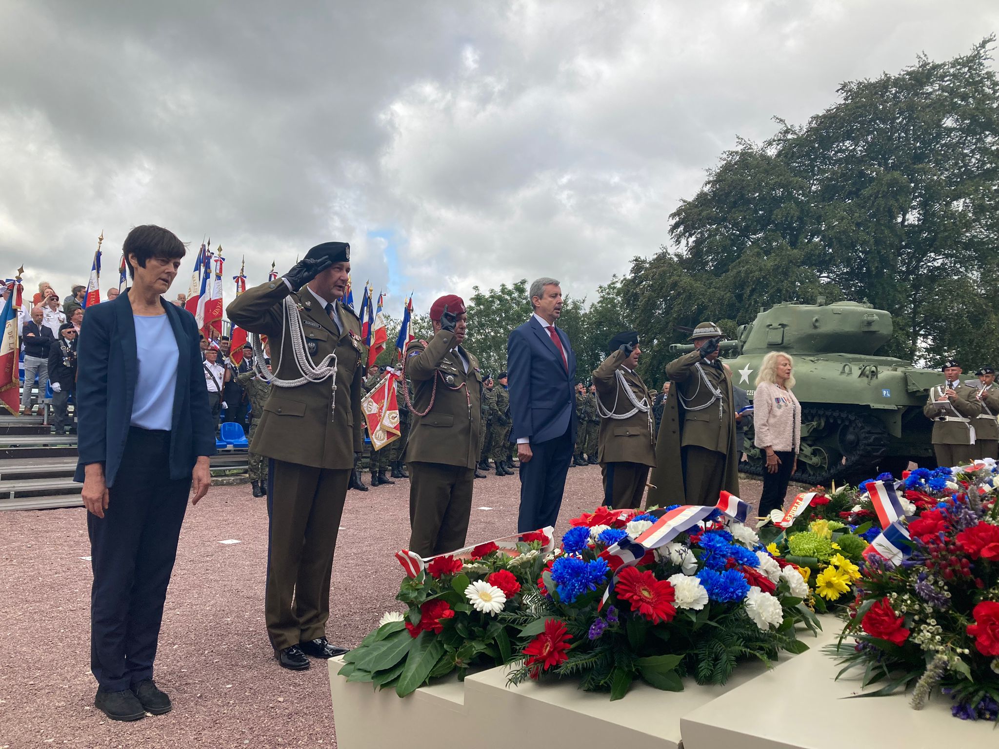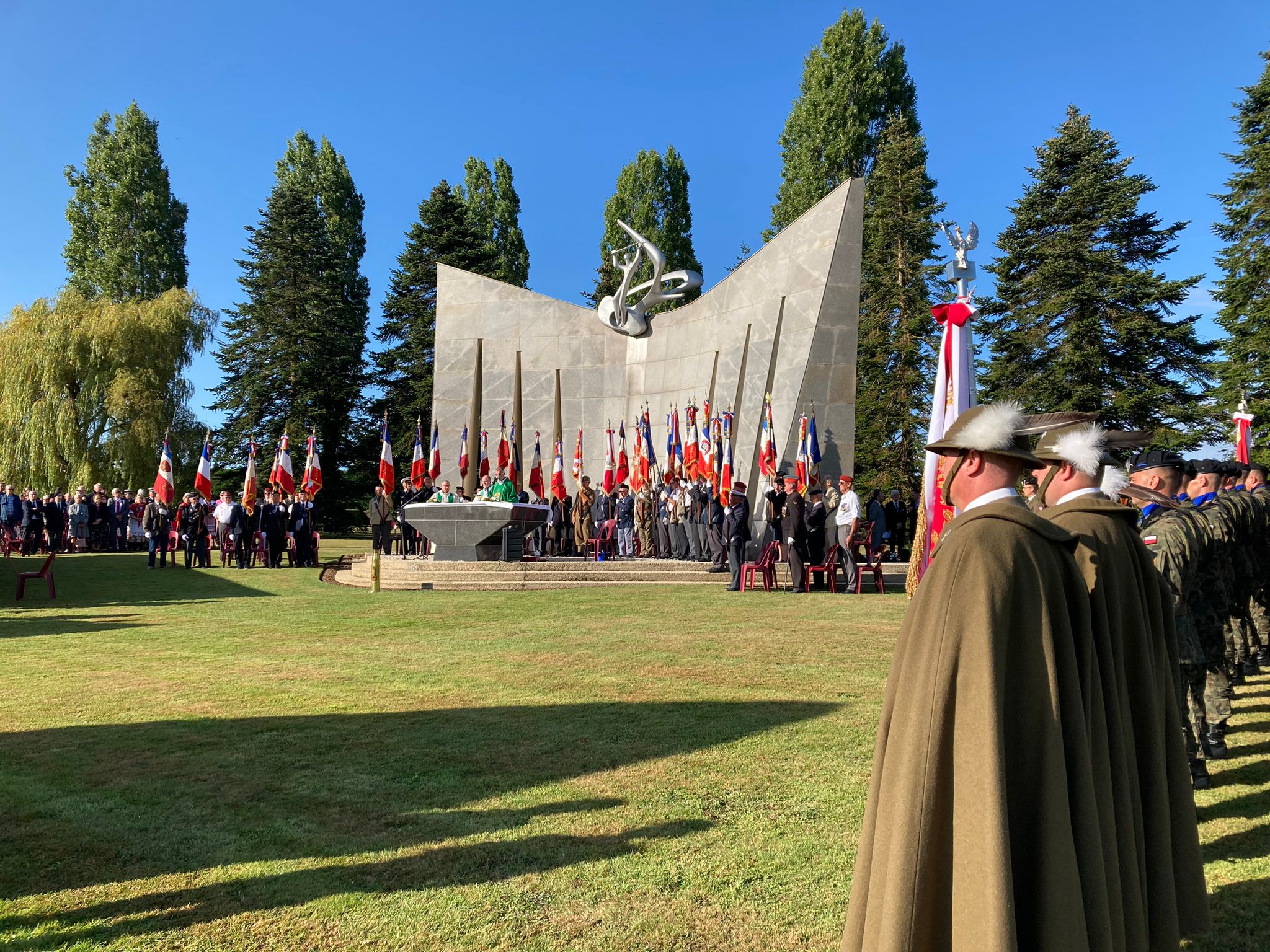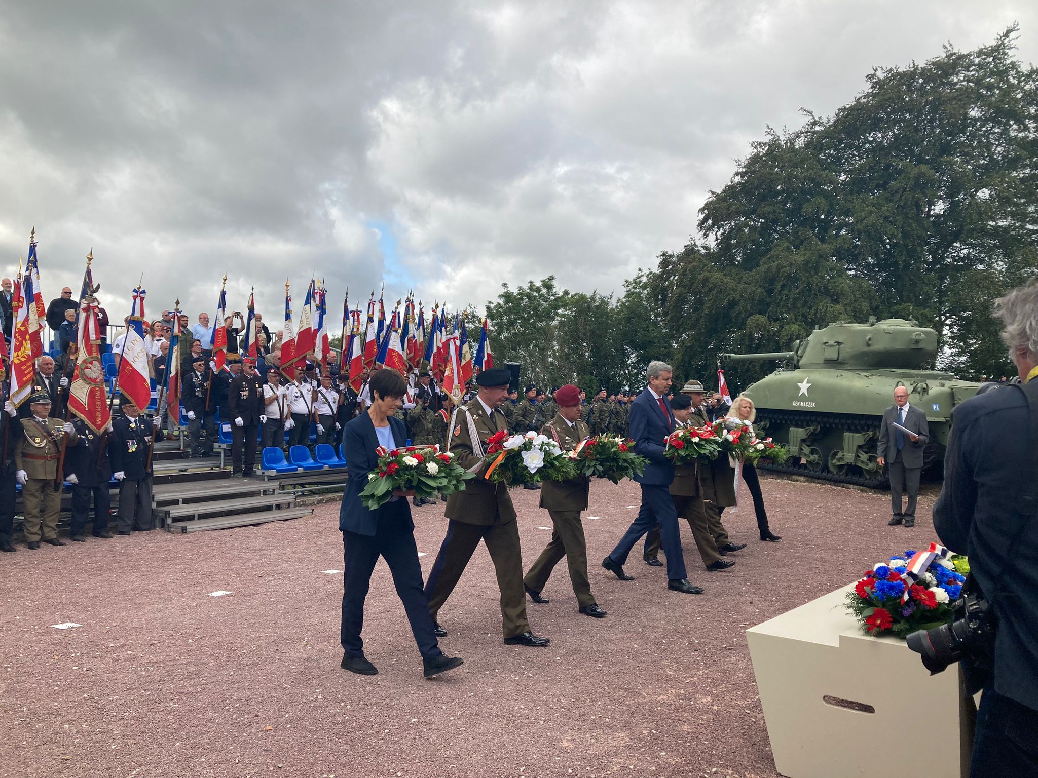 Podczas ceremonii przedstawiciele władz oraz środowisk kombatanckich złożyli wieńce pod pomnikiem gen. Stanisława Maczka oraz pod główną tablicą Memoriału Montormel.