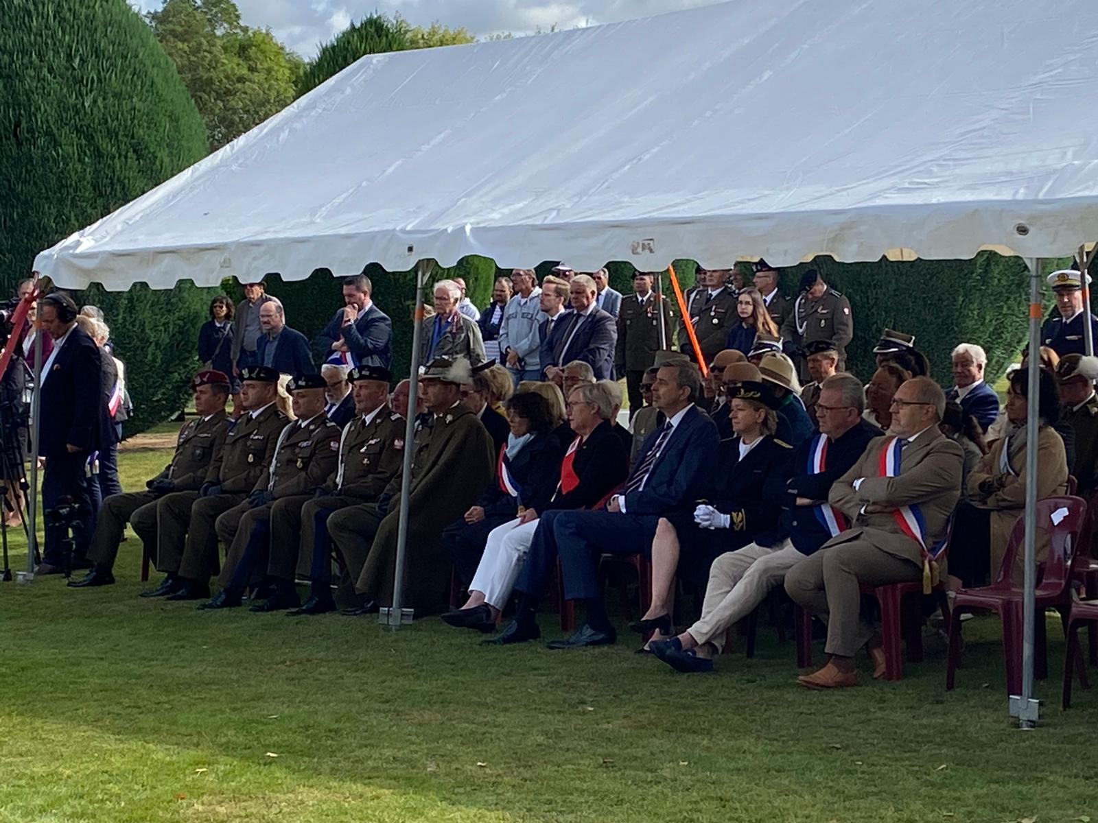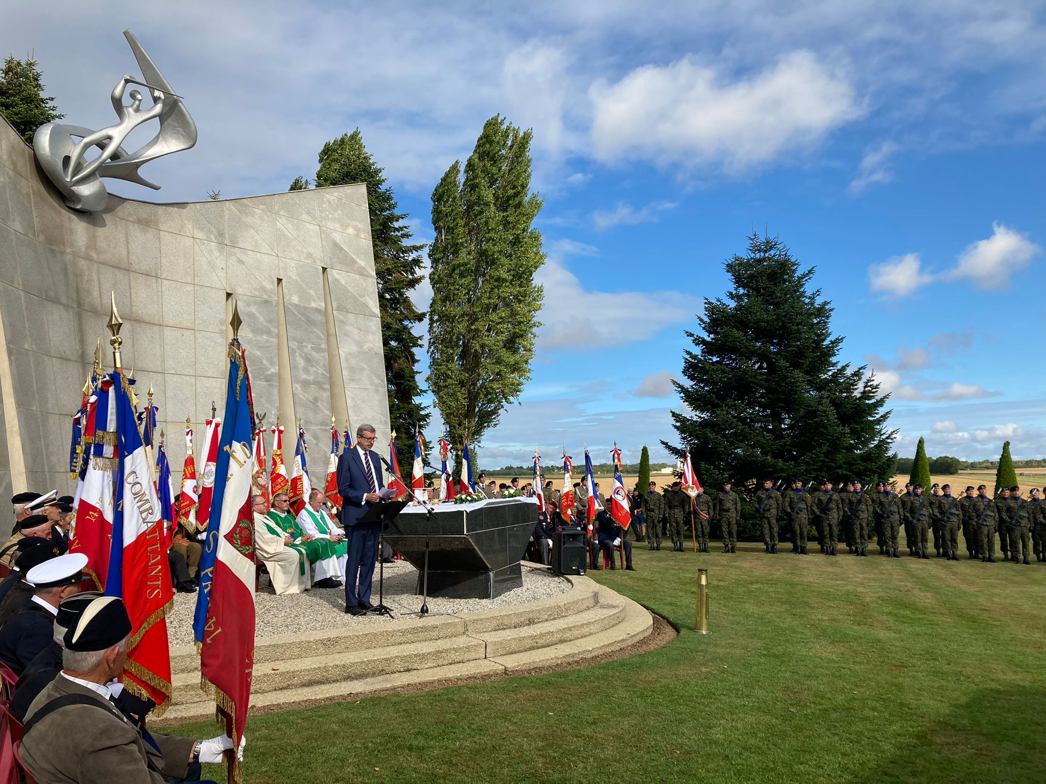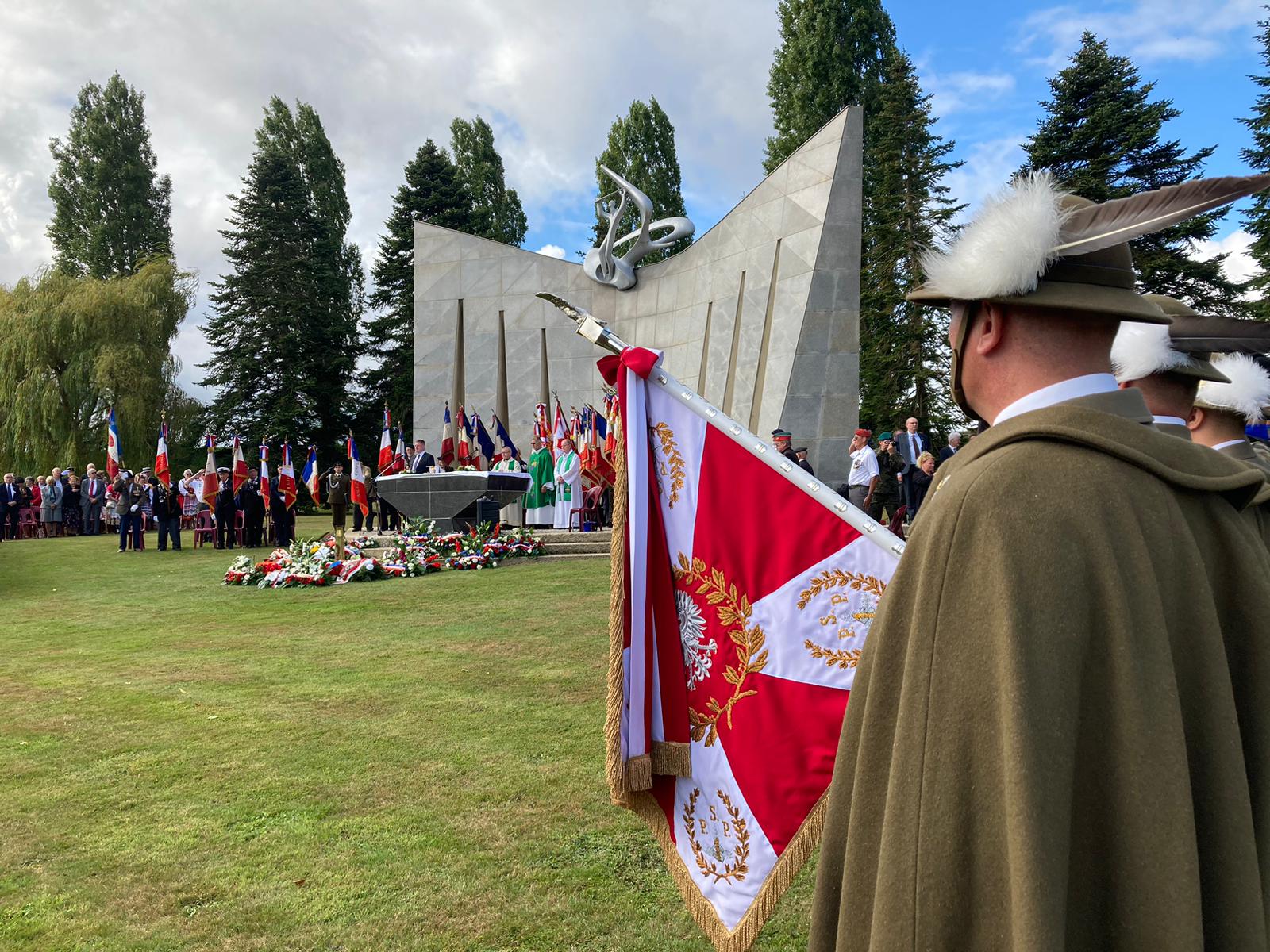 Podczas ceremonii przedstawiciele władz oraz środowisk kombatanckich złożyli wieńce pod pomnikiem gen. Stanisława Maczka oraz pod główną tablicą Memoriału Montormel.