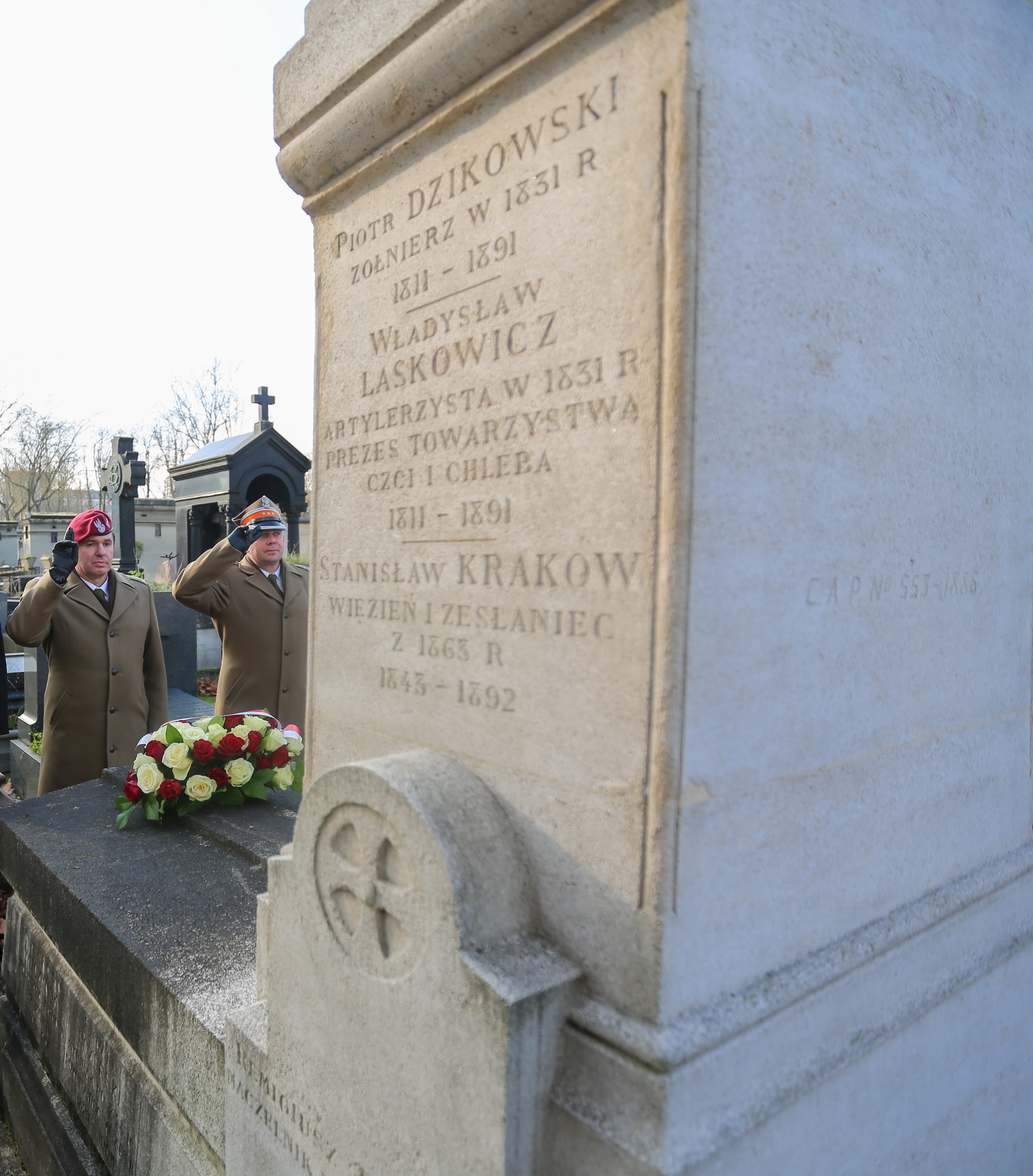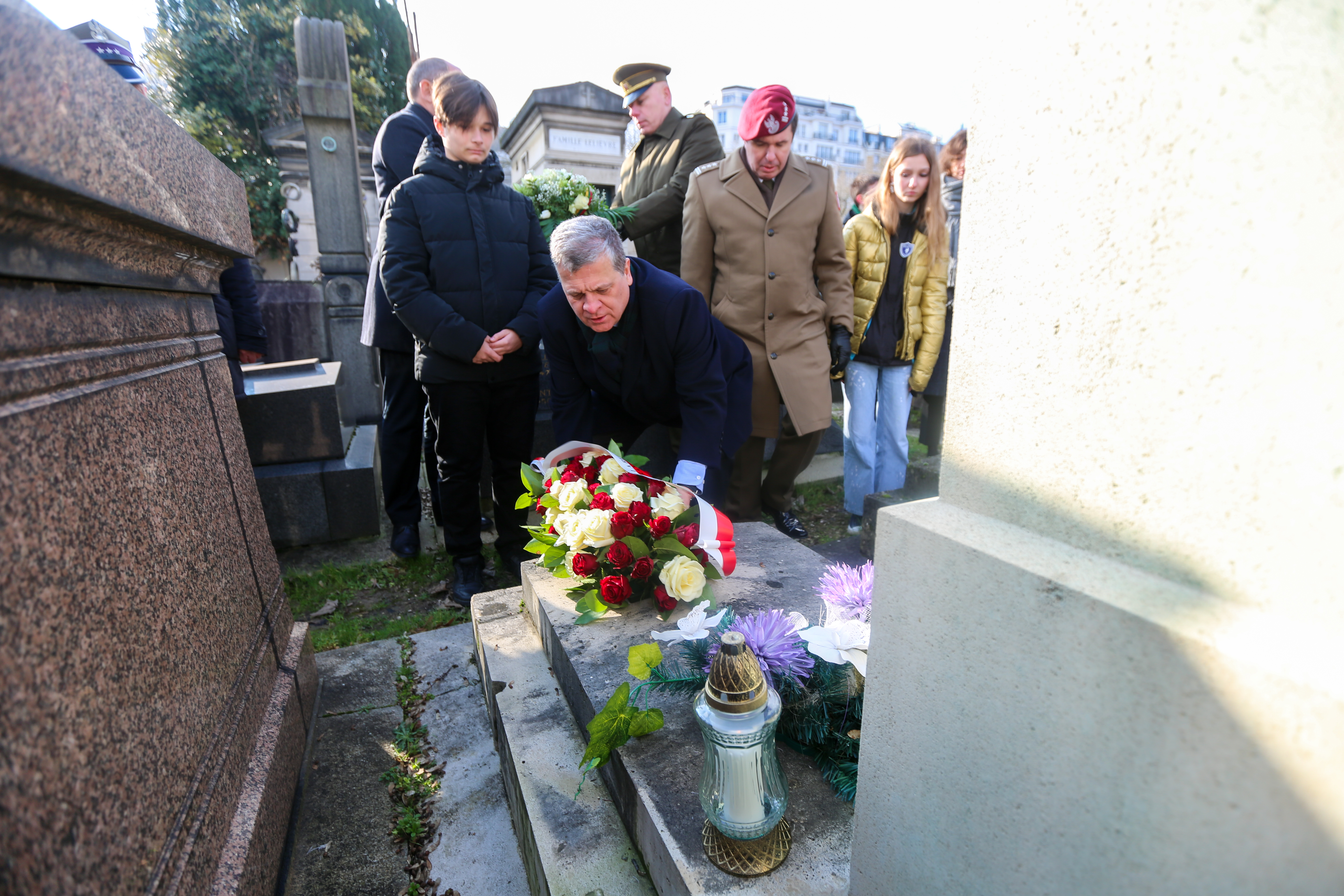 Druga część uroczystości upamiętnienia Powstania Styczniowego miała miejsce na cmentarzu Montparnasse, na którym spoczywają niektórzy słynni polscy Powstańcy Styczniowi. Ambasador Polski i Litwy wraz z Attaché Obrony obu krajów oraz zgromadzona młodzież upamiętniła uczestników powstania zniczami i kwiatami złożonymi na ich grobach.