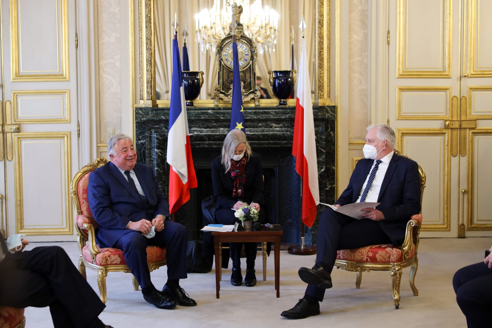 Wizyta wicepremiera zakończyła się spotkaniem z przewodniczącym Senatu Republiki Francuskiej Gérardem Larcherem, podczas którego politycy rozmawiali o polsko-francuskiej współpracy gospodarczej oraz o przyszłości Unii Europejskiej.