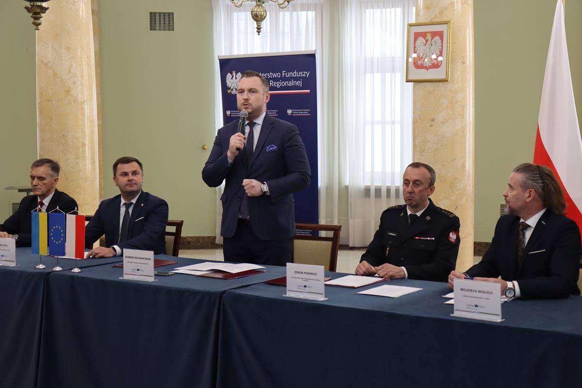 Wiceminister funduszy i polityki regionalnej Konrad Wojnarowski podpisał umowę o dofinansowanie projektu „Wspólna promocja i realizacja działań związanych z odpornością na zmiany klimatu – klęski żywiołowe i pożary” z lubelską Komendą Wojewódzką Państwowej Straży Pożarnej.